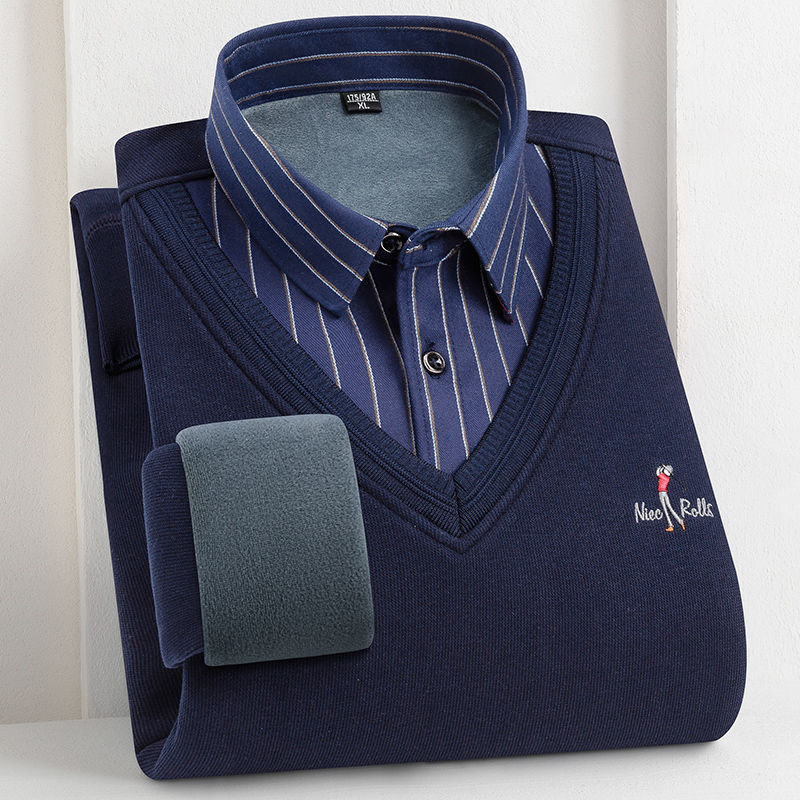 Fleece-lined Thickened Fake Shirt Collar Pullover Leisure Warm Sweater