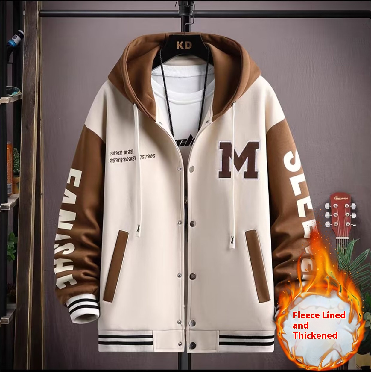 Fleece-lined Thickened Hooded Baseball Uniform Boys Autumn And Winter