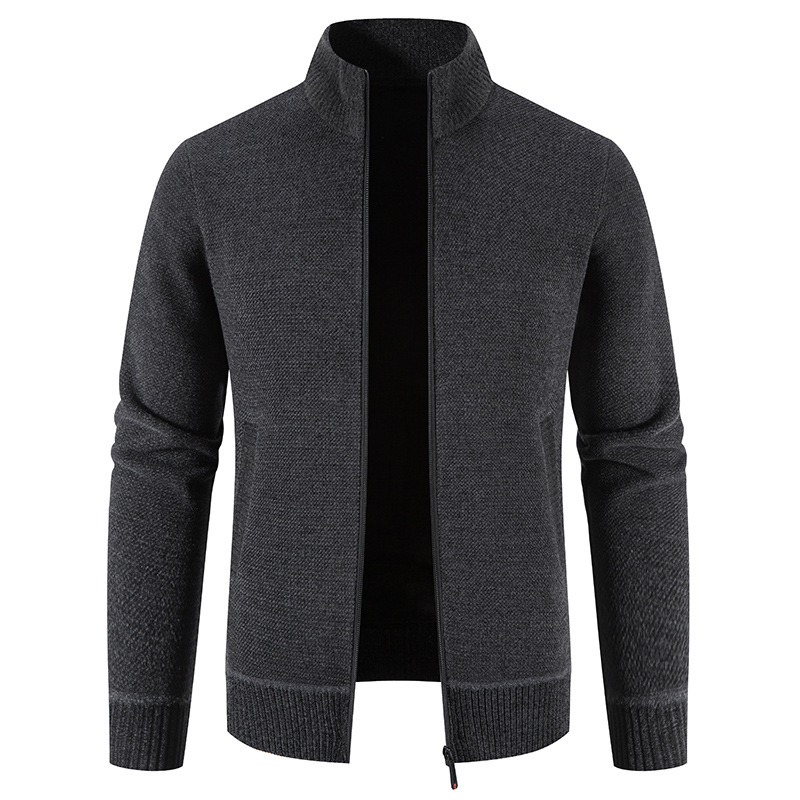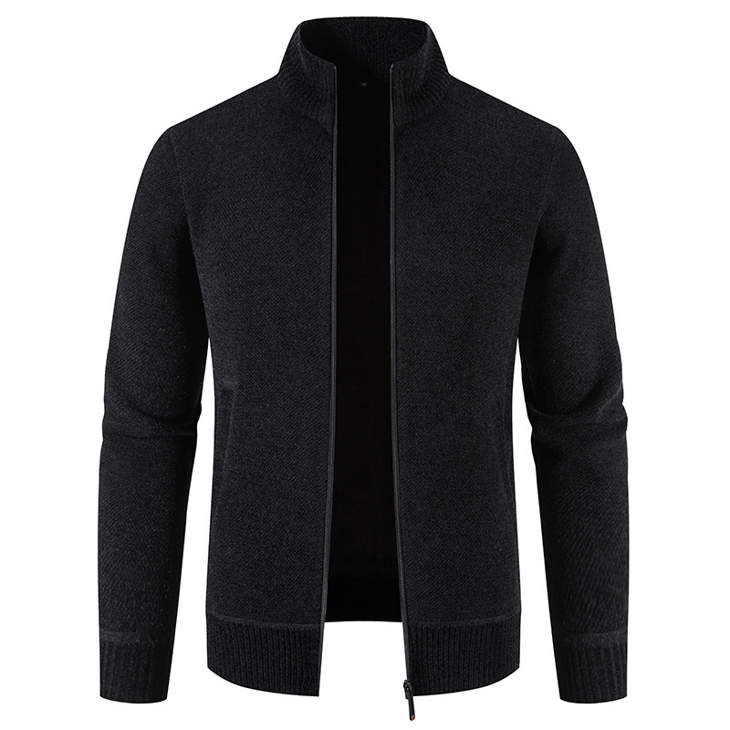Fleece-lined Thickened Men's Knitted Stand Collar Jacket