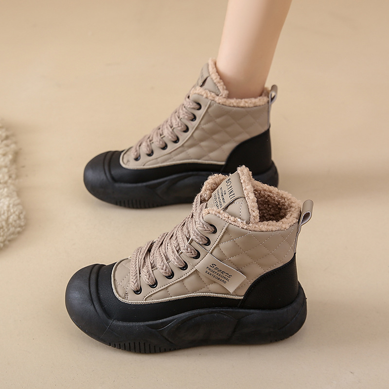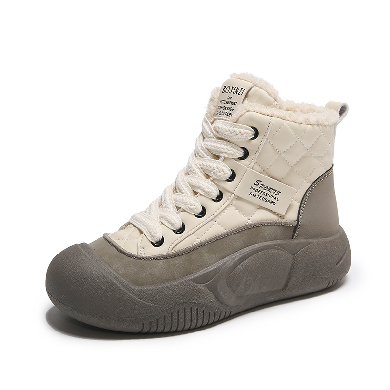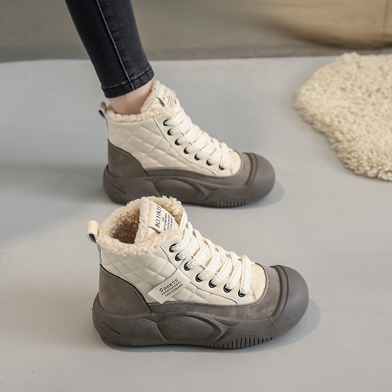 Fleece-lined White Shoes Women's Height Increasing Sports Board Shoes