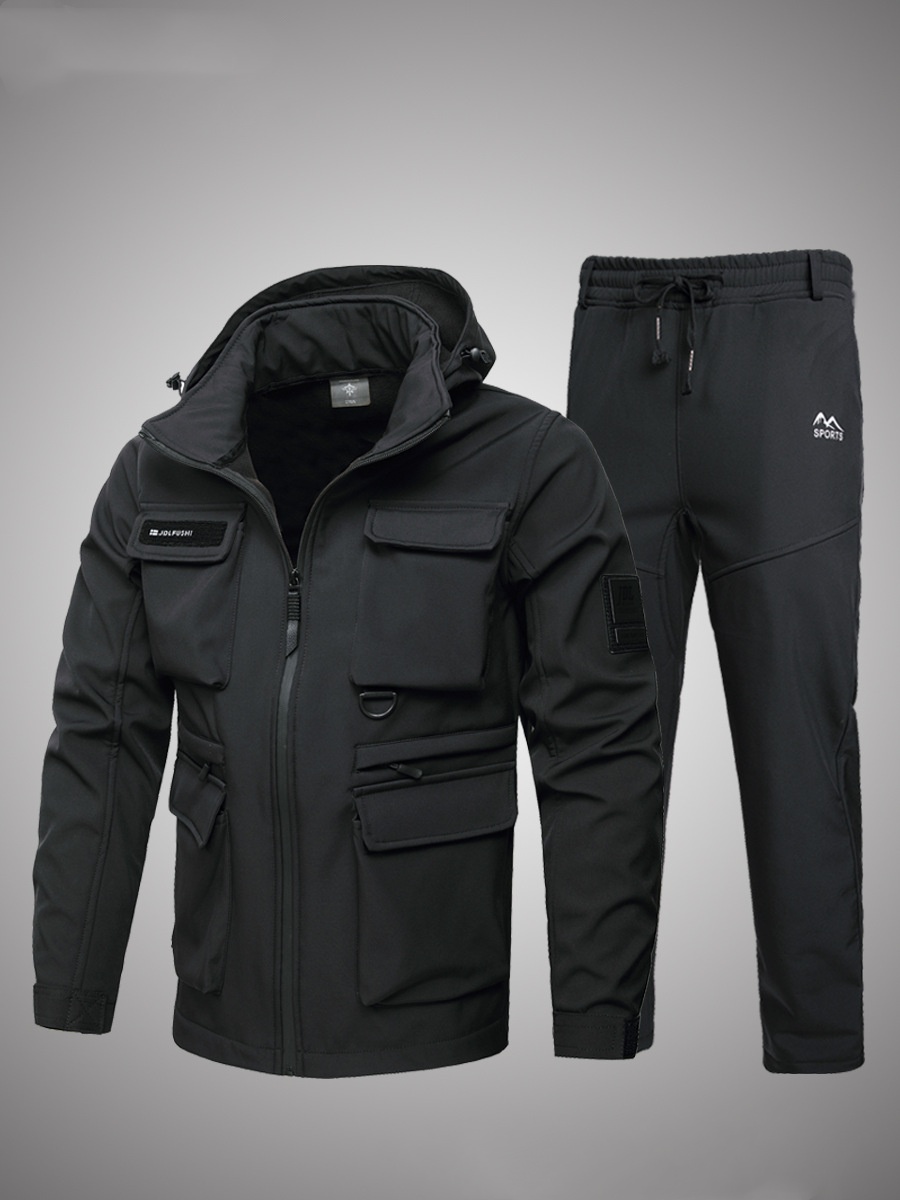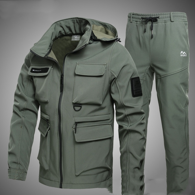 Color: Black plus velvet waterproof suit, Army Green velvet waterproof suit, gray camouflage brushed waterproof suit