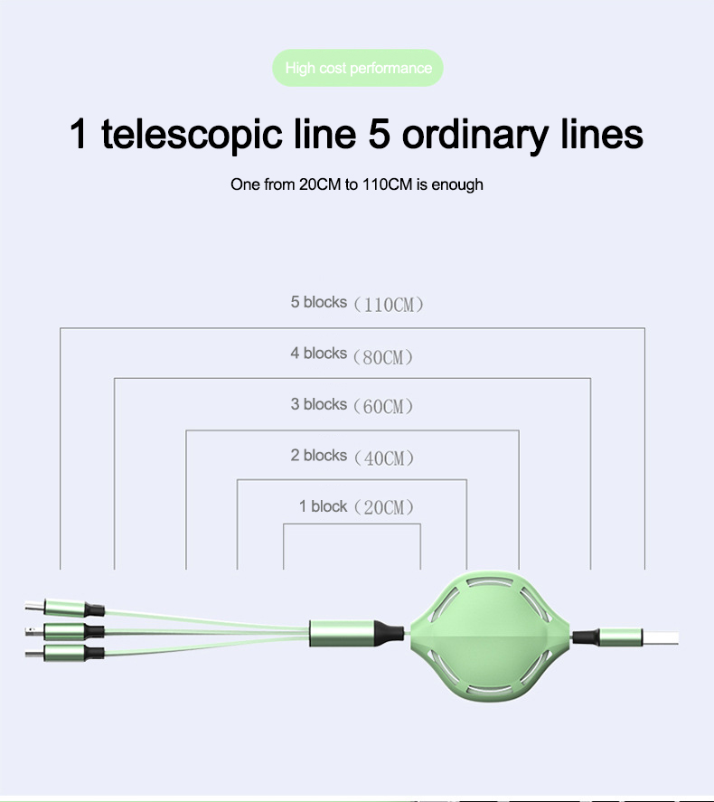 Model One for three retractable cords-green, one for three retractable cords-red, one for three retractable cords-pink, one for three retractable cords-purple, one for three retractable cords-black, one for three retractable cords-yellow, one Drag three telescopic lines