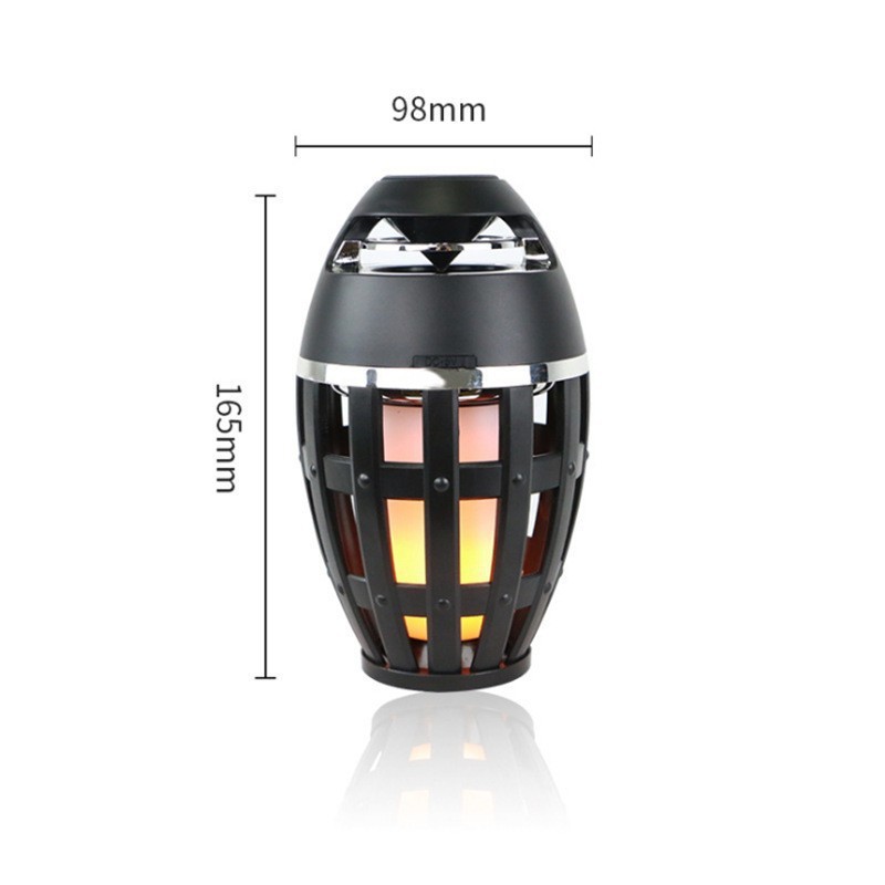 Flame speaker size: L165×D100×H39 mm Accessories:1* USB charging cable1*Chinese and English manual1*flame light speaker