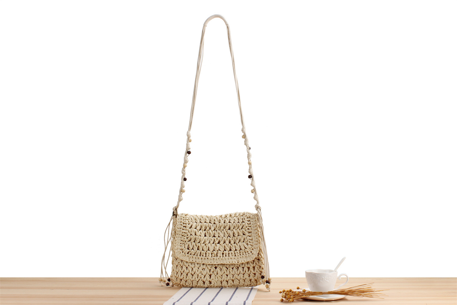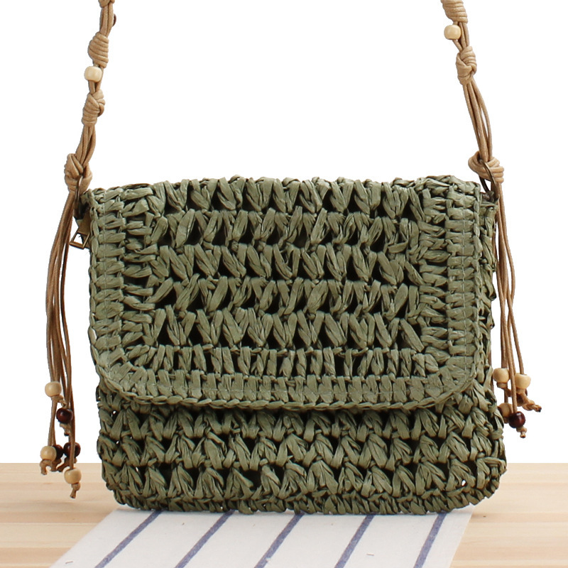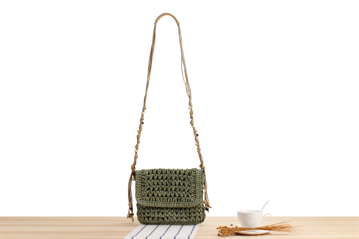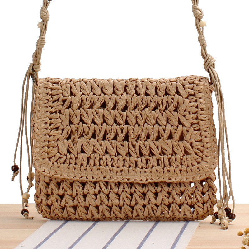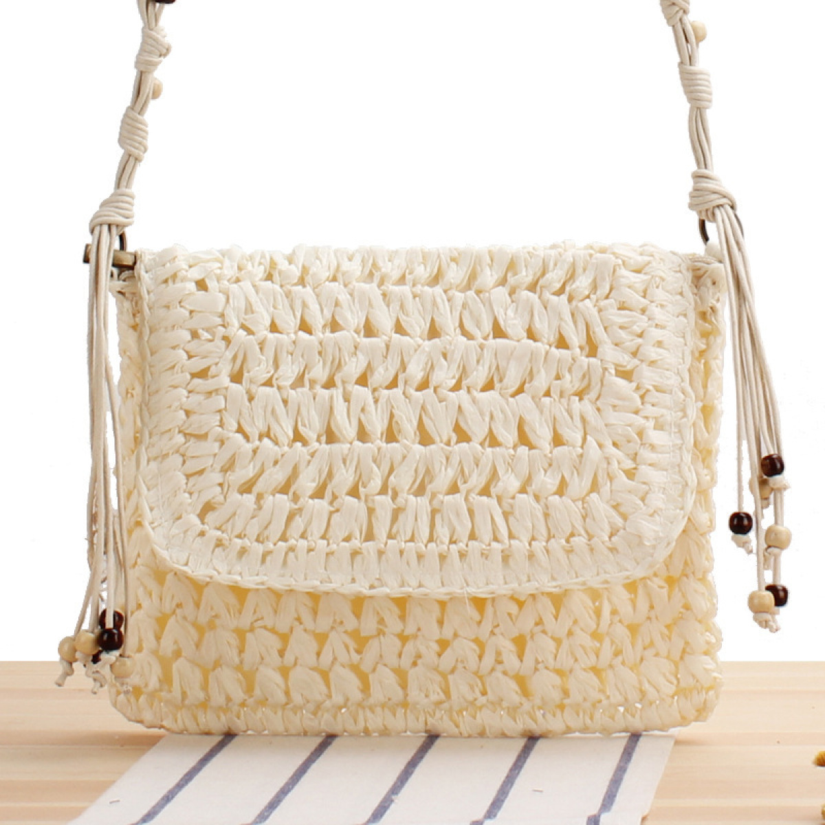 Flip Crossbody Straw Fan Face Flower Woven Bag