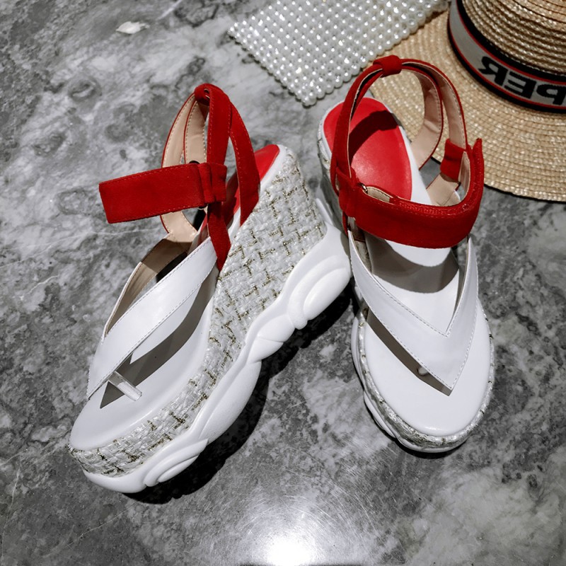 Popular elements: Shallow mouth, wedge heel, color matching, waterproof platform
