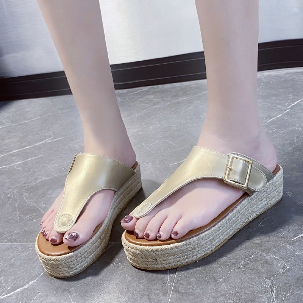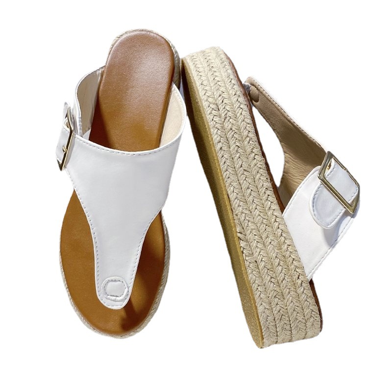 Flip Flops Women's Leather Platform Belt Buckle Large Size Sandals