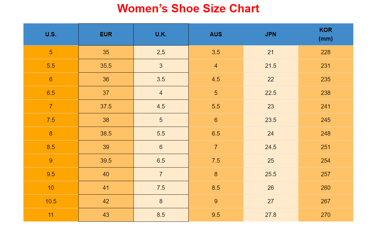 Size 35 = US size 4 = feet length 22.5CM