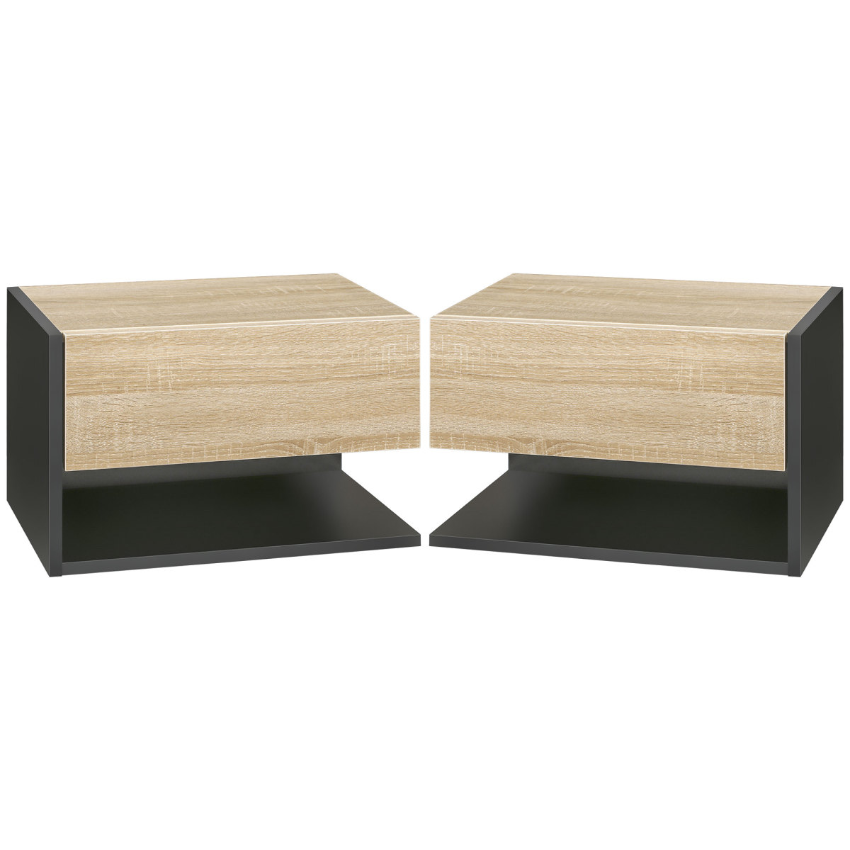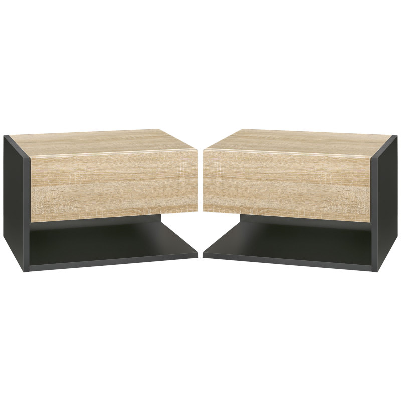 Check out Bedside Tables Set of 2! These two legless small tables mount directly onto the wall, conserving space and preventing moisture damage by avoiding ground contact. Each features a drawer and an open shelf, keeping your personal items like a night lamp, book, or water glass within easy reach. You're going to adore it!