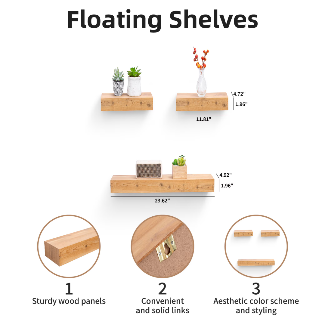 Versatile & Practical: Hang these rectangular wall shelves in the bedroom, display bathroom accents, or place them below a mirror in the entryway. Showcase family photos in a hallway, highlight trophies and accolades near the fireplace, add kitchen decor, or store spices and jars. They also serve as storage in laundry rooms, above toilets, or as corner bookshelves, living room wall decor, or office wall accents.