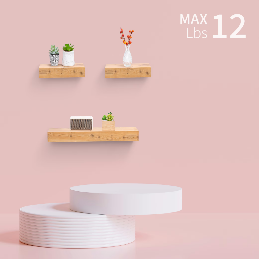 Maximize Your Space: Take advantage of storage without occupying additional floor space. These shelves help reduce clutter and emphasize wall decor, making them perfect for smaller areas. Our Floating Wall Shelves offer innovative storage options for homes of any style, studio apartments, mantels, or vacant walls. Use them to enhance bedroom decor, living room aesthetics, bathroom sets, or wall decor in the bathroom.