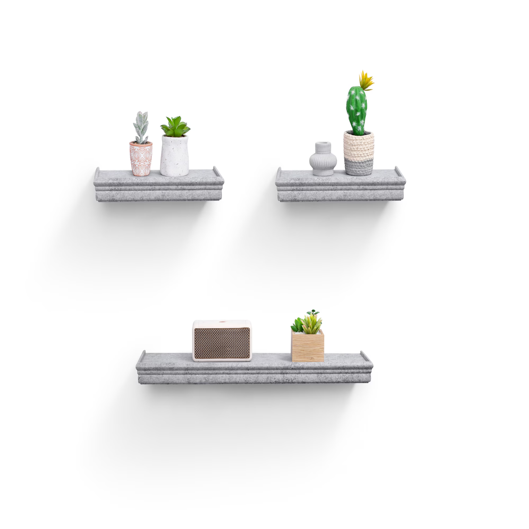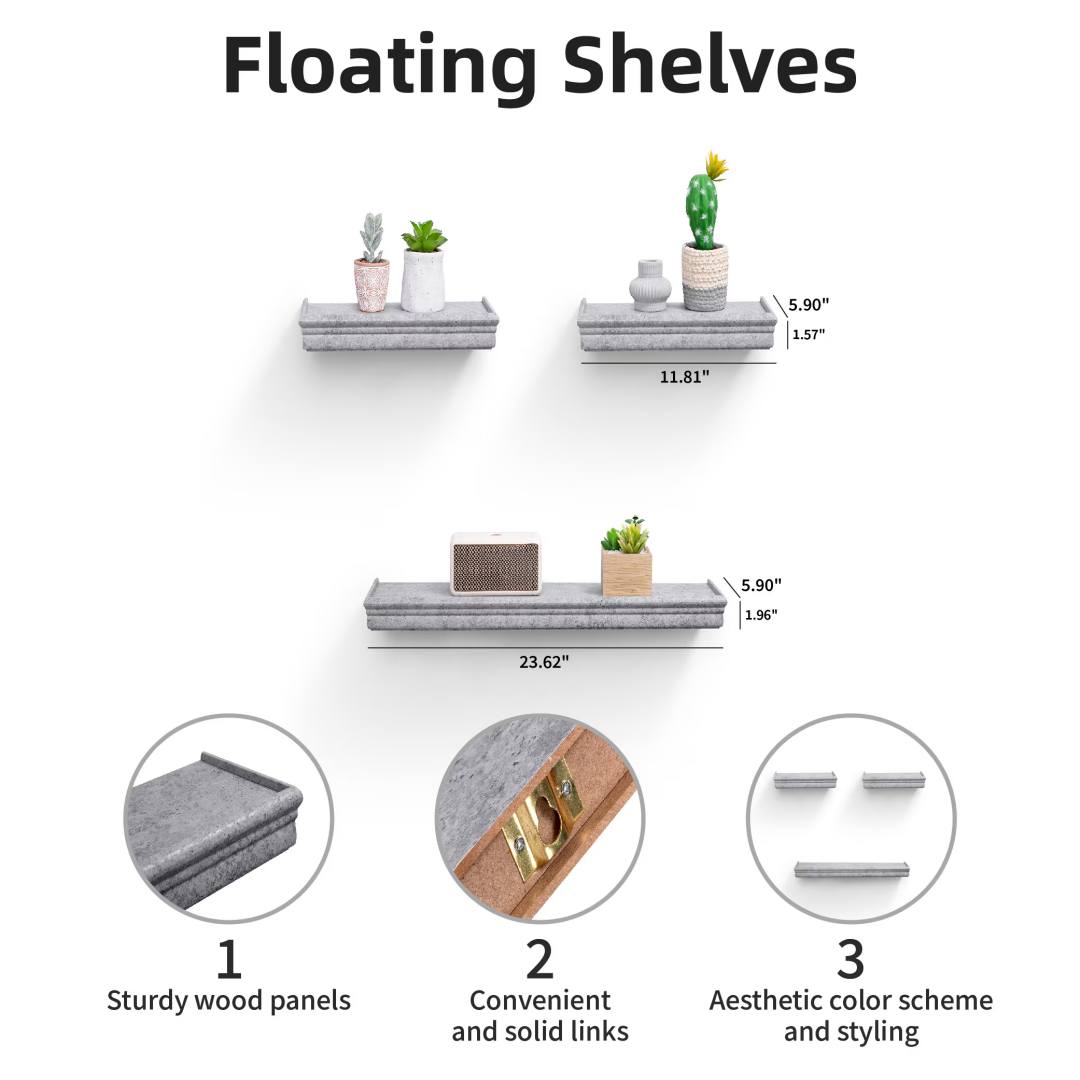 Maximize Your Space: Take advantage of storage without occupying additional floor space. These shelves help reduce clutter and emphasize wall decor, making them perfect for smaller areas. Our Floating Wall Shelves offer innovative storage options for homes of any style, studio apartments, mantels, or vacant walls. Use them to enhance bedroom decor, living room aesthetics, bathroom sets, or wall decor in the bathroom.