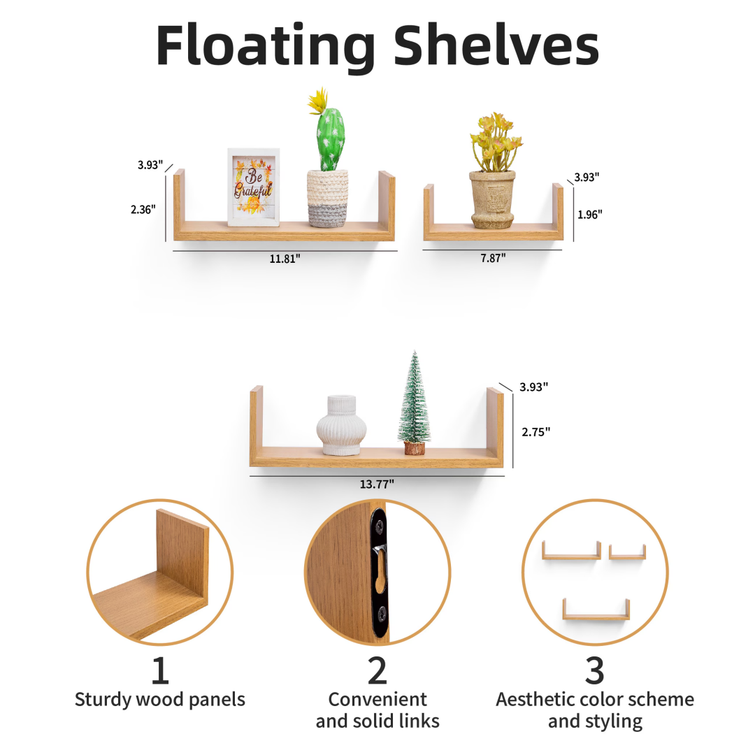 Maximize Your Space: Take advantage of storage without occupying additional floor space. These shelves help reduce clutter and emphasize wall decor, making them perfect for smaller areas. Our Floating Wall Shelves offer innovative storage options for homes of any style, studio apartments, mantels, or vacant walls. Use them to enhance bedroom decor, living room aesthetics, bathroom sets, or wall decor in the bathroom.