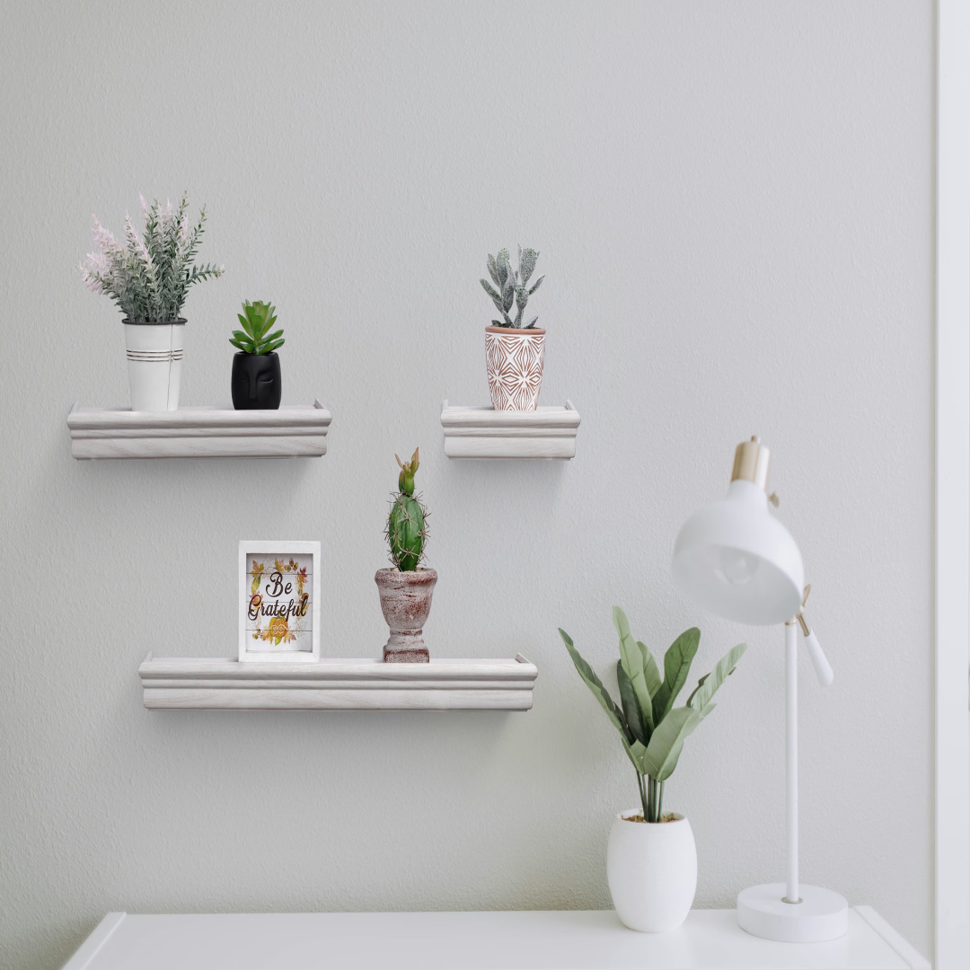 Floating Wall Shelves for Stylish Storage: Showcase your favorite decorative items, collectibles, and other treasured possessions, while also providing practical storage solutions.