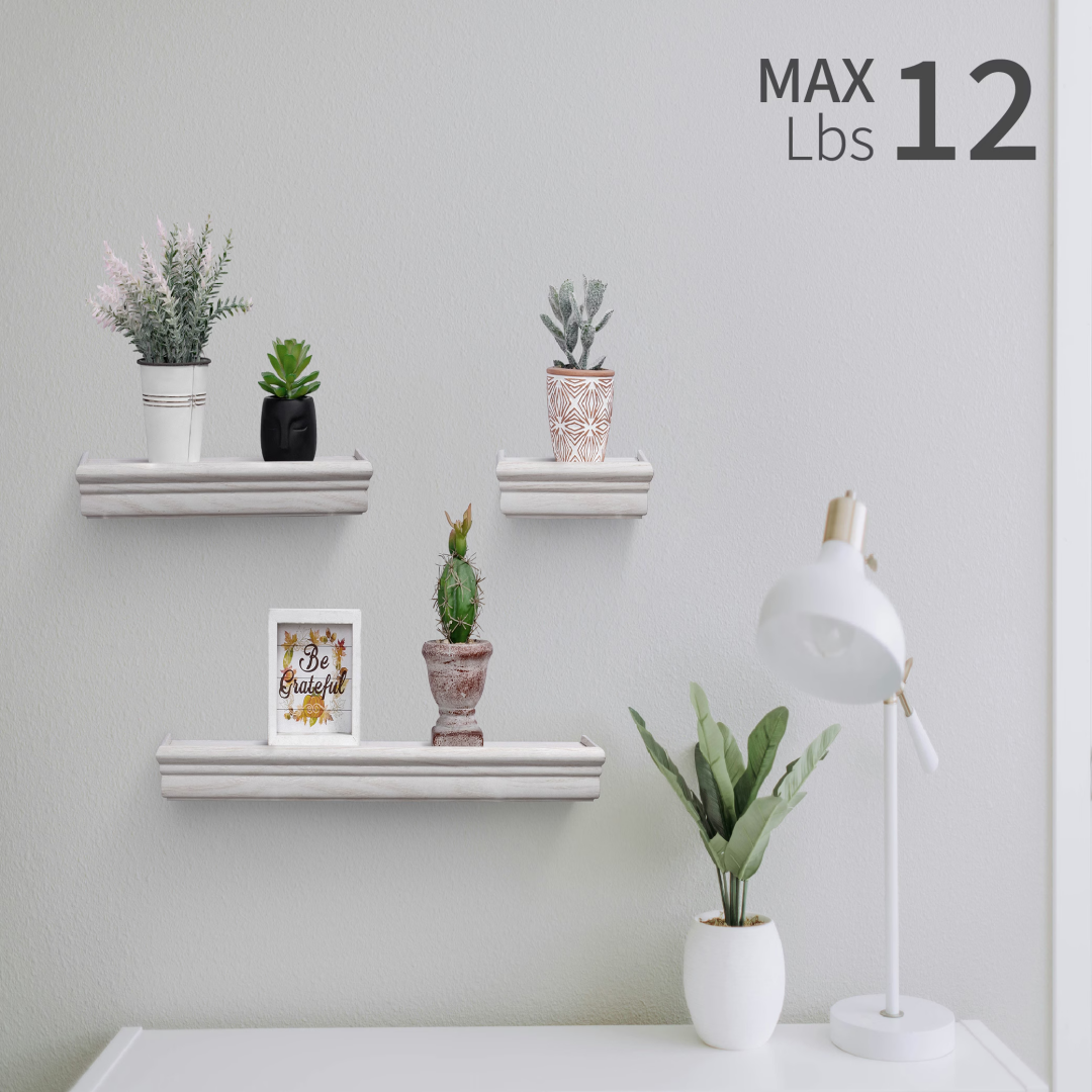 Maximize Your Space: Take advantage of storage without occupying additional floor space. These shelves help reduce clutter and emphasize wall decor, making them perfect for smaller areas. Our Floating Wall Shelves offer innovative storage options for homes of any style, studio apartments, mantels, or vacant walls. Use them to enhance bedroom decor, living room aesthetics, bathroom sets, or wall decor in the bathroom.