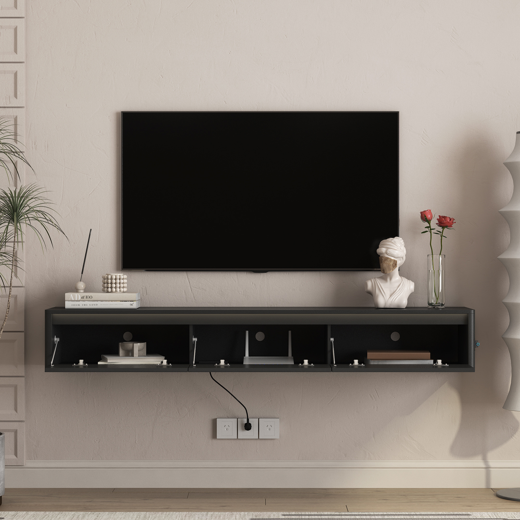 Product Name:Floating TV Stand, Wall Mounted TV Shelf with Led Lights & Power Outlet,High Gloss TV Cabinet for Black tv Stands for Living Room