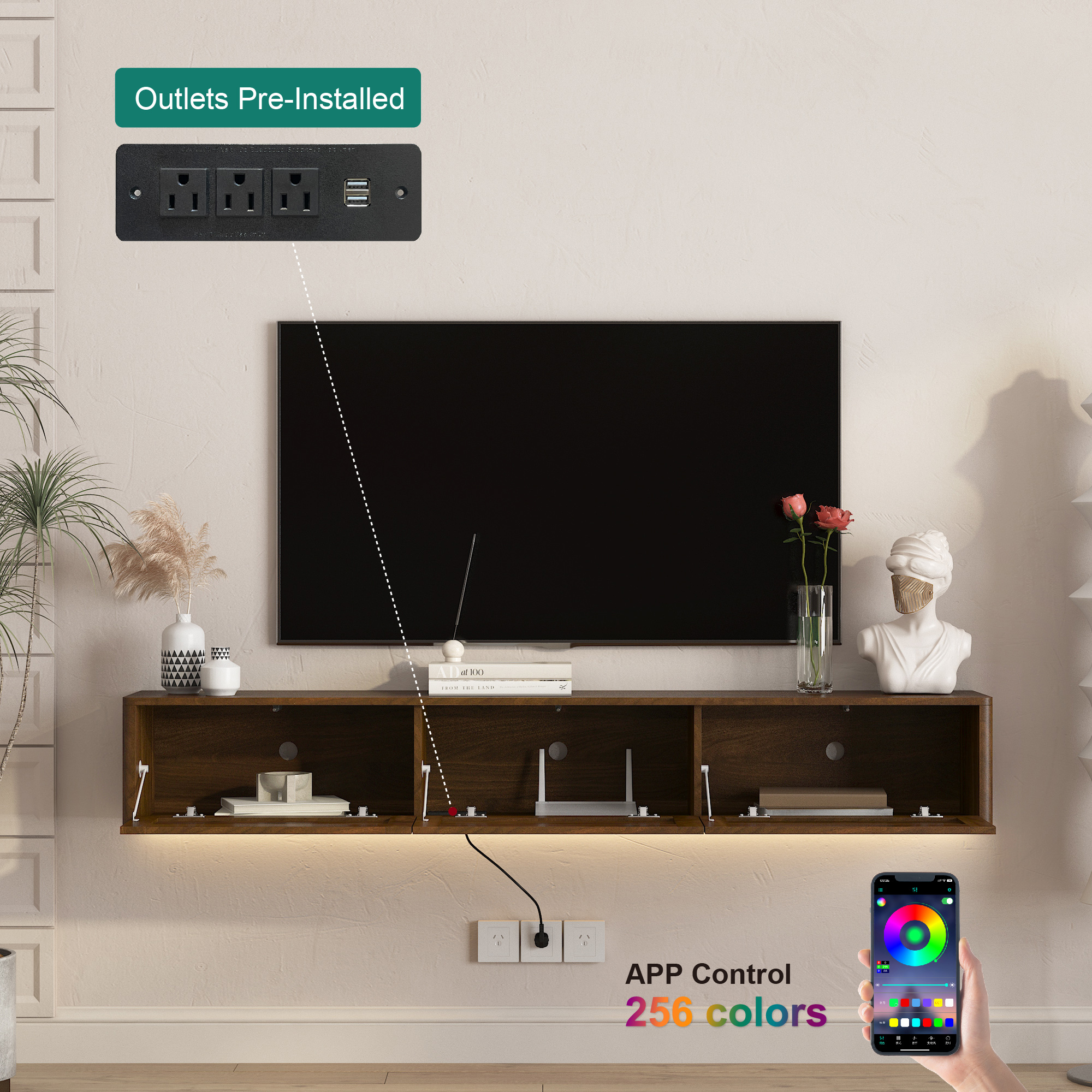 Product Name:Floating TV Stand, Wall Mounted TV Shelf with Led Lights & Power Outlet,High Gloss TV Cabinet for Wood tv Stands for Living Room