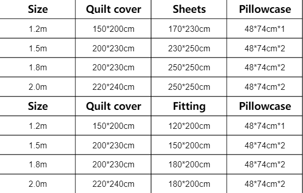 Sheets-1.2m, Sheets-1.5m, Sheets-1.8m, Sheets-2.0m,