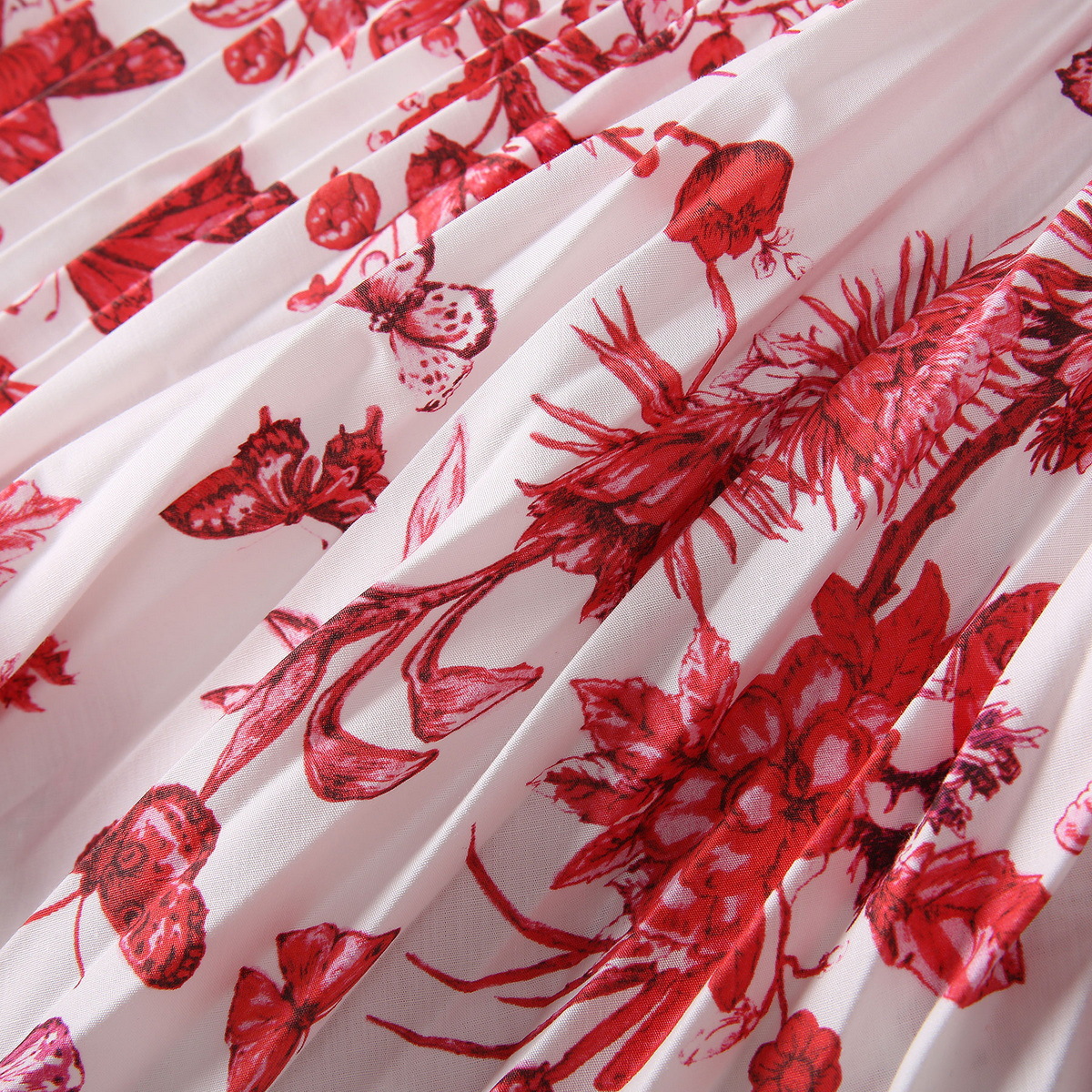 Color: white background with red flowers