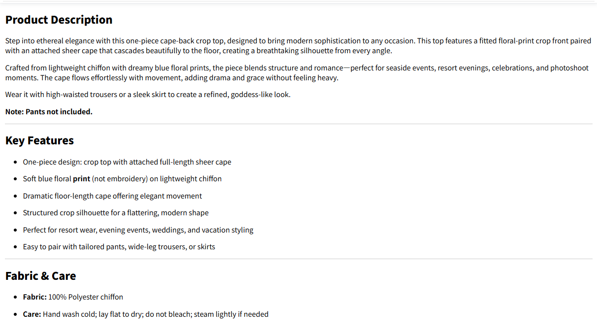 Floral Print Cape-Back Crop Top-One-Piece Elegant Sheer Overlay Blouse