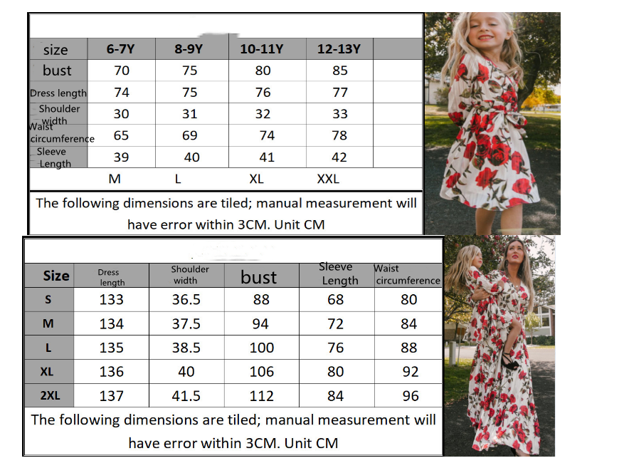 Suitable height: mother S, mother M, mother L, mother XL, mother XXL, child 6-7M, child 8-9L, child 10-11XL, child 12-13XXL