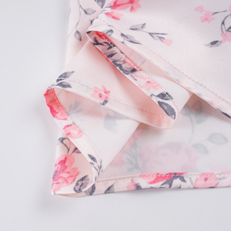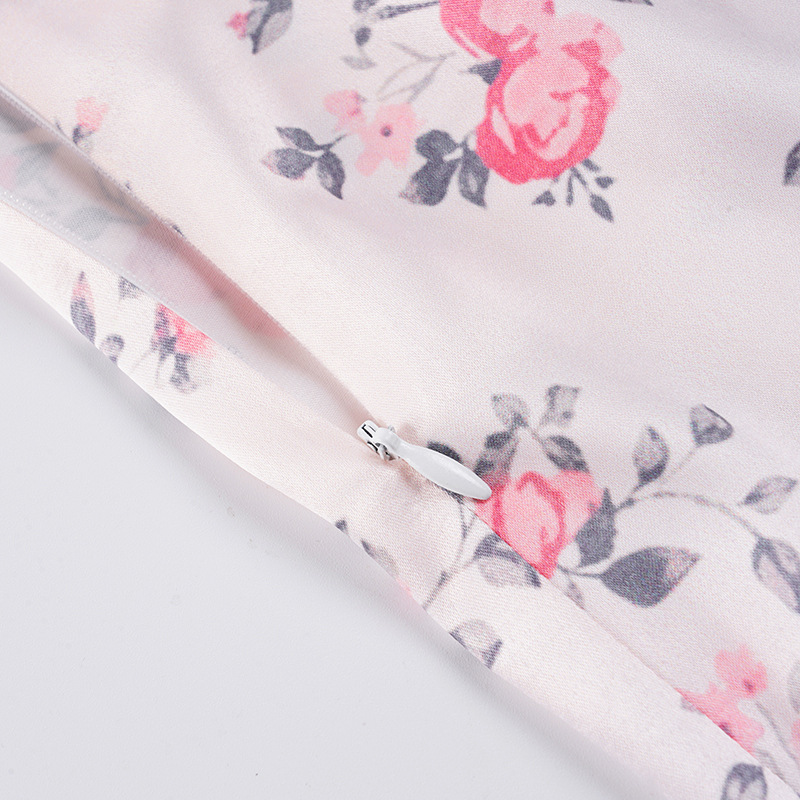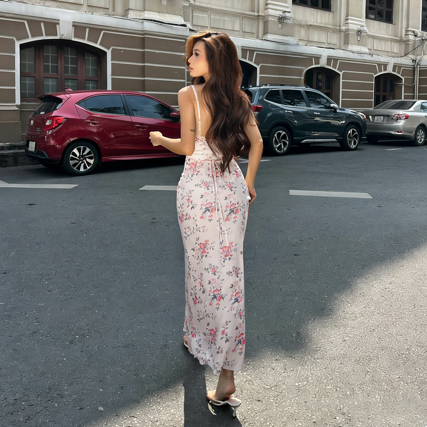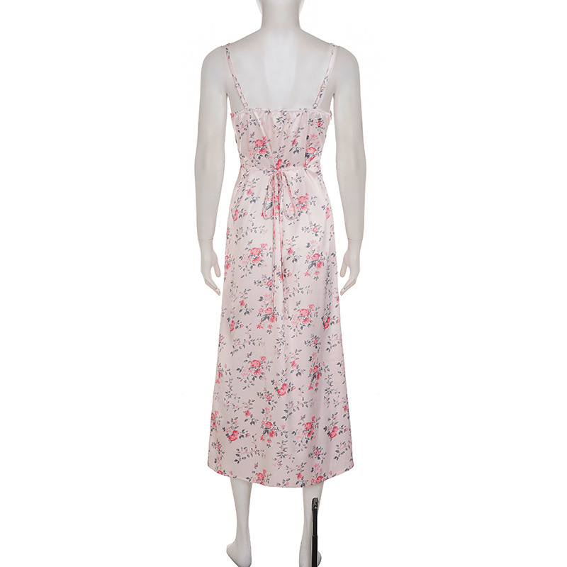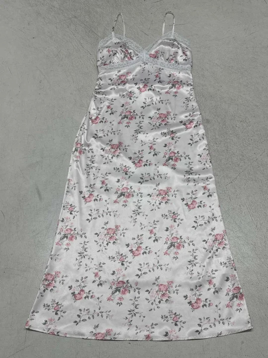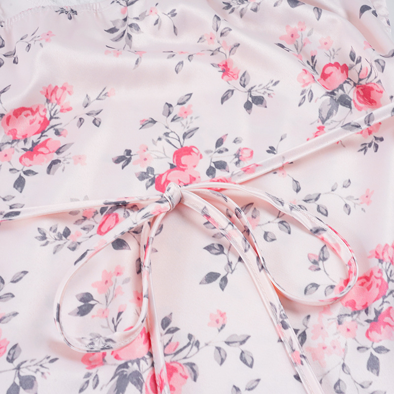 Floral-print Lace-spliced Deep V-neck Slip Dress