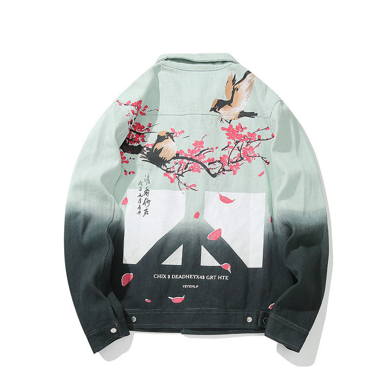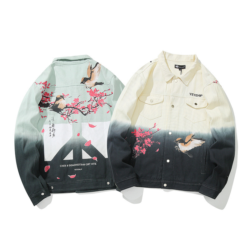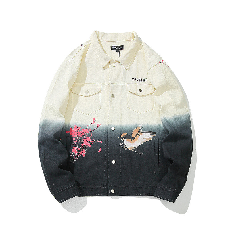 Floral Print National Tide Autumn Hip Hop Denim Male