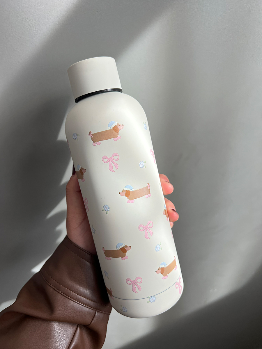 Color classification: blue flower sausage dog thermos cup, crushed flower sausage dog thermos cup, creamy white style crushed flower