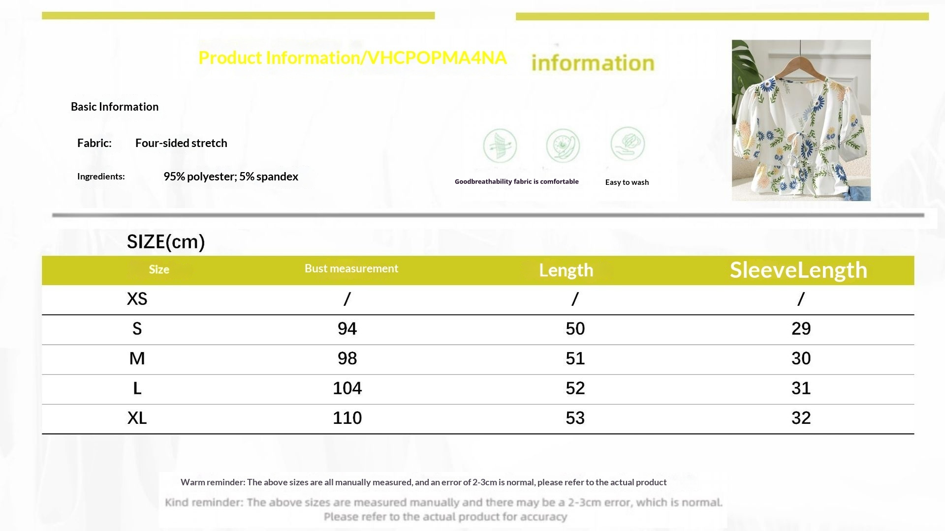Sizes: S, M, L, XL