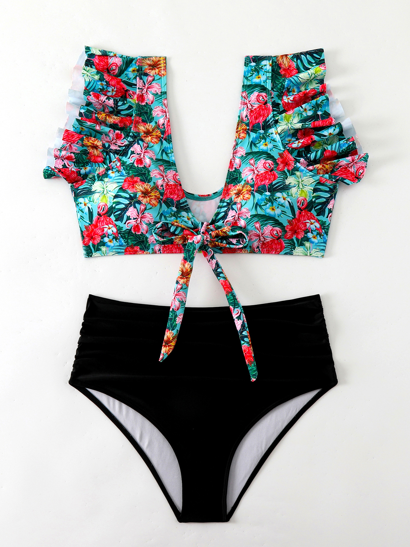 Flounced Split Swimsuit Bikini European And American Sexy High Waist