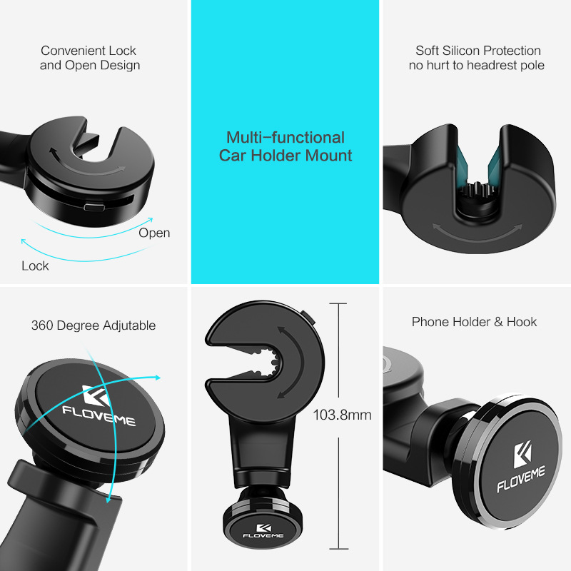 [Feature]: 360 Rotate + Strong Magnet + Back Seat Headrest Hook