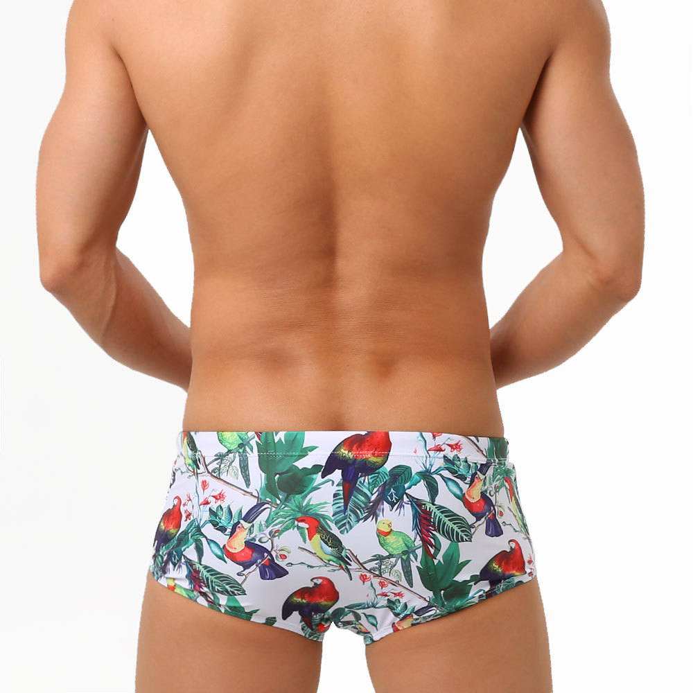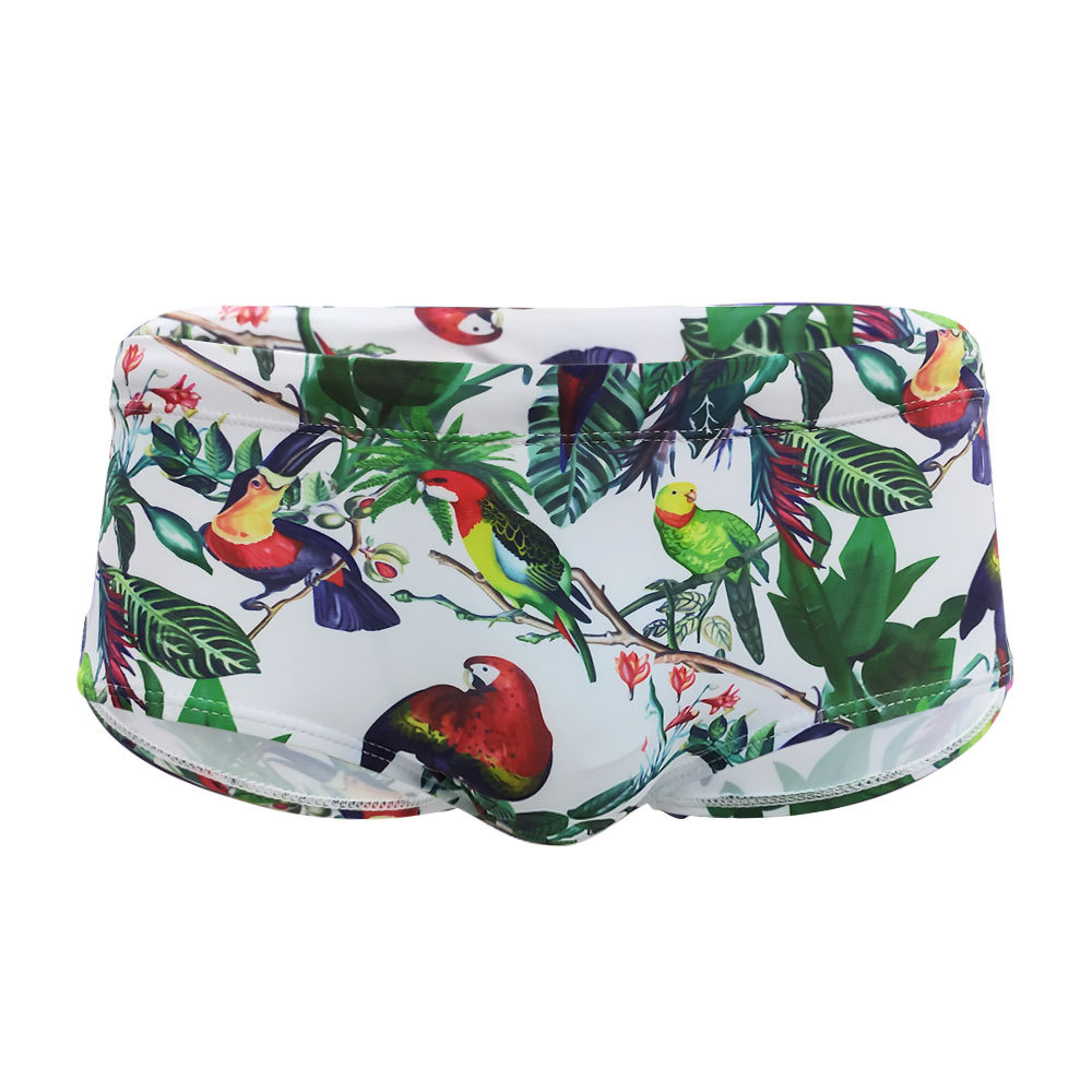 Flower-bird Print Fashion Men's Small Boxer Swimming Trunks