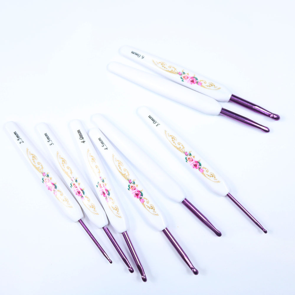 Model Powder crochet printed aluminum crochet hook 8 pcs 1 set, black crochet printed aluminum crochet hook 8 pcs 1 set