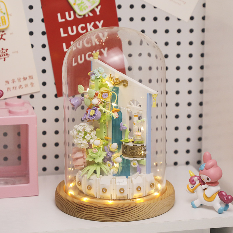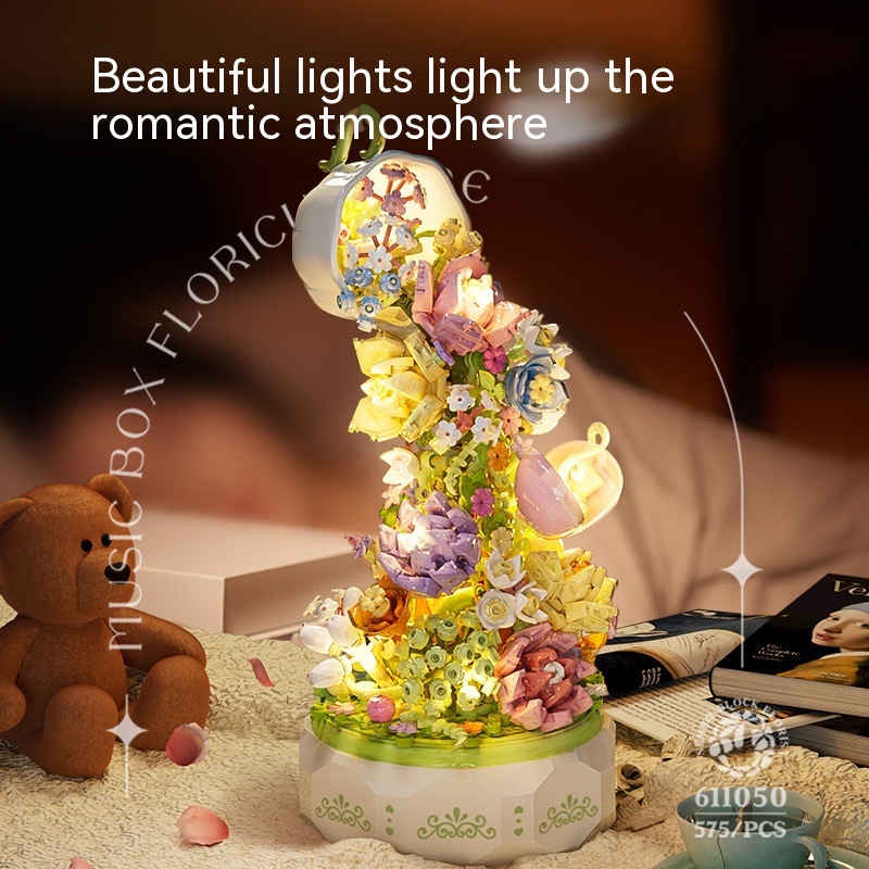 Colors: 611081 Flower Beauty Tea Crystal Edition, 611081 Flower Beauty Tea Language Crystal Edition+Dust Cover as shown in the picture [with light], 611050 Flower Beauty Tea Language+Dust Cover [with light], 611050 Flower Beauty Tea Language, 6010 Water Pavilion Flower Blossom [with light] (non music box), 6010 Water Pavilion Flower Blossom+Glass Light Cover [with light] (non music box)