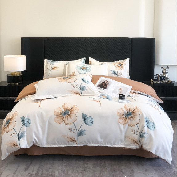 Flower Brushed Thickened Quilt Cover 4-piece Kit