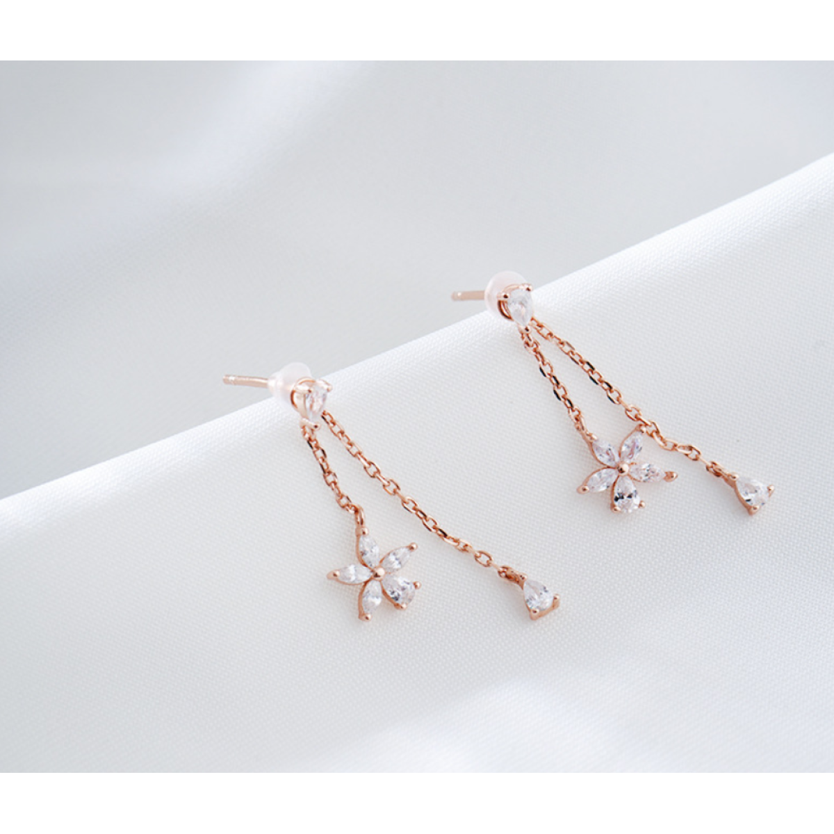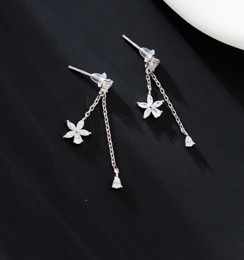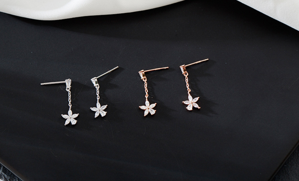 Color: flower zircon pendant earrings _ white gold, flower zircon pendant earrings _ rose gold