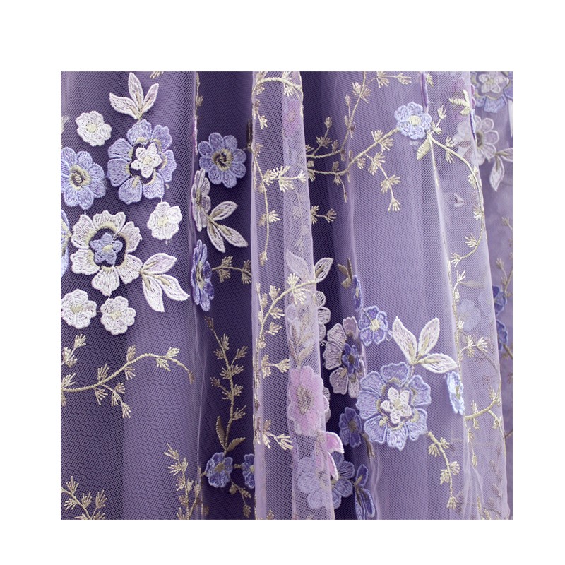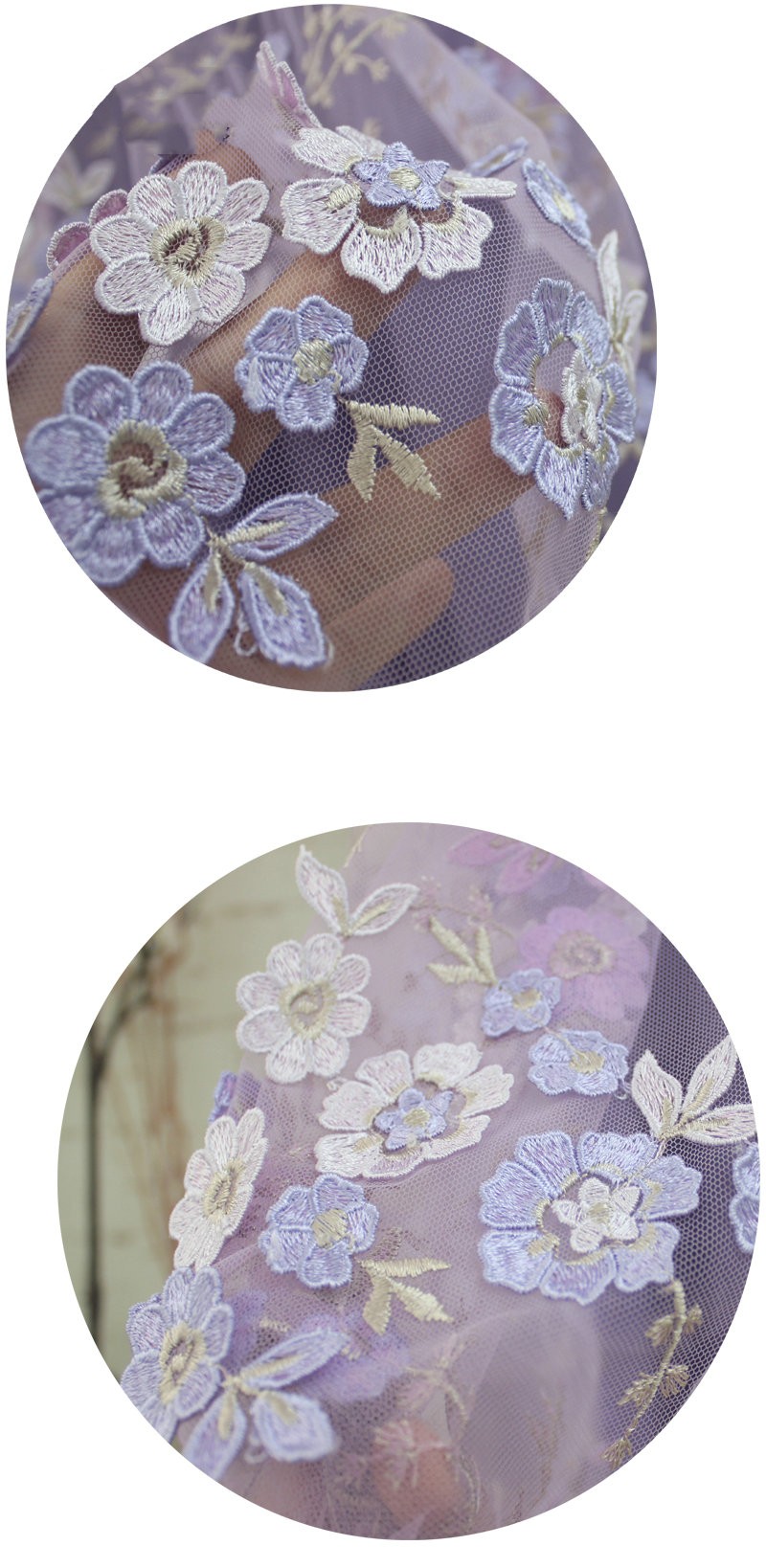 Features: three-dimensional embroidery fabric, exquisite outer yarn, solid mesh fabric with the same color tone in the middle layer, and silk lining