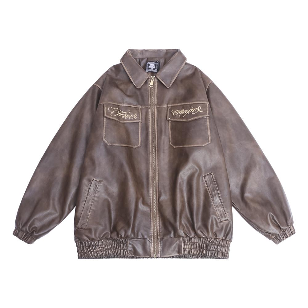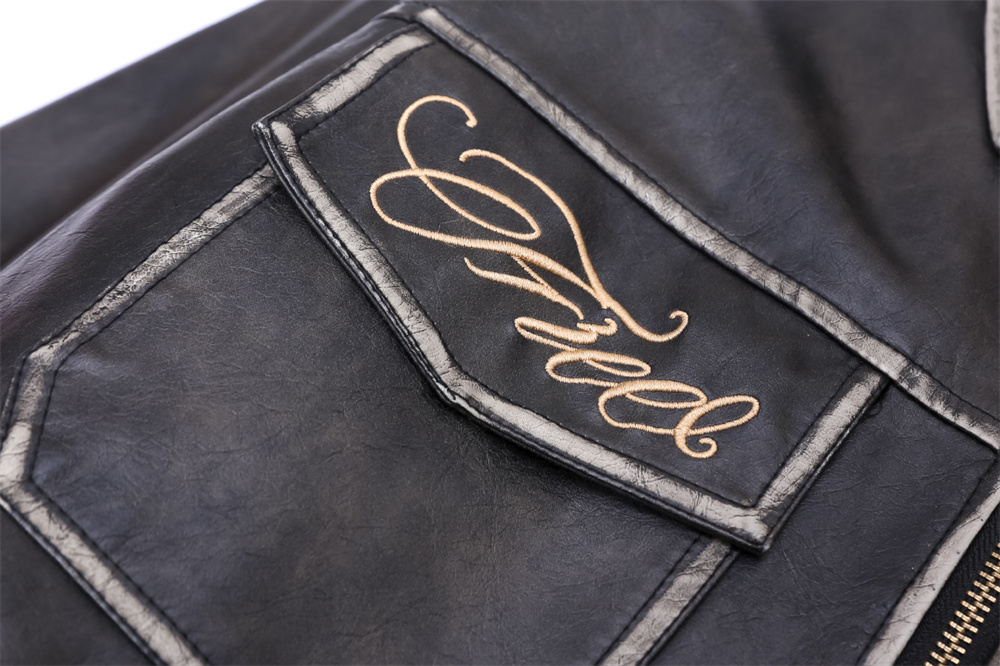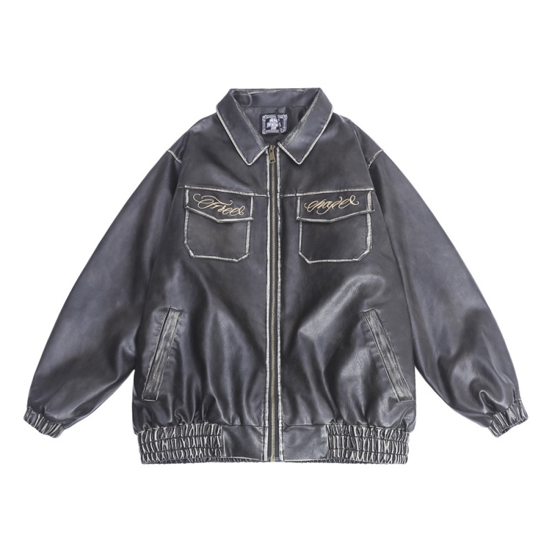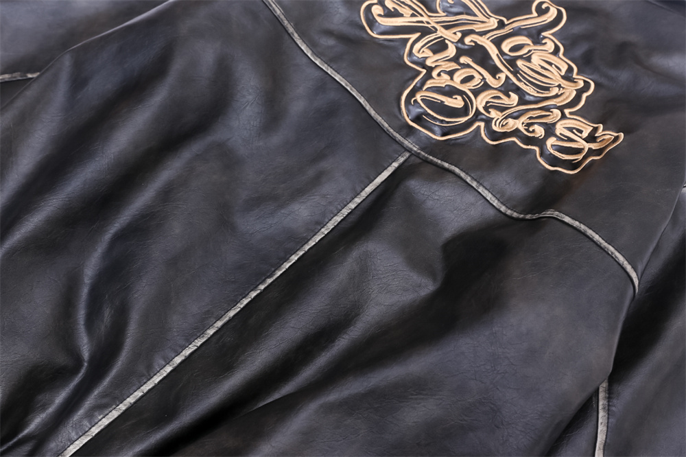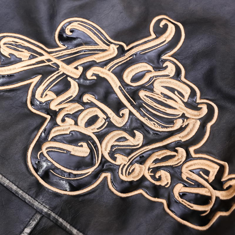Flower Embroidery Cotton Padded Thickened Leather Coat Men