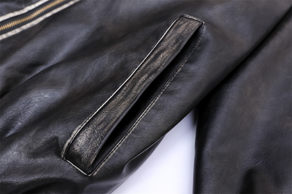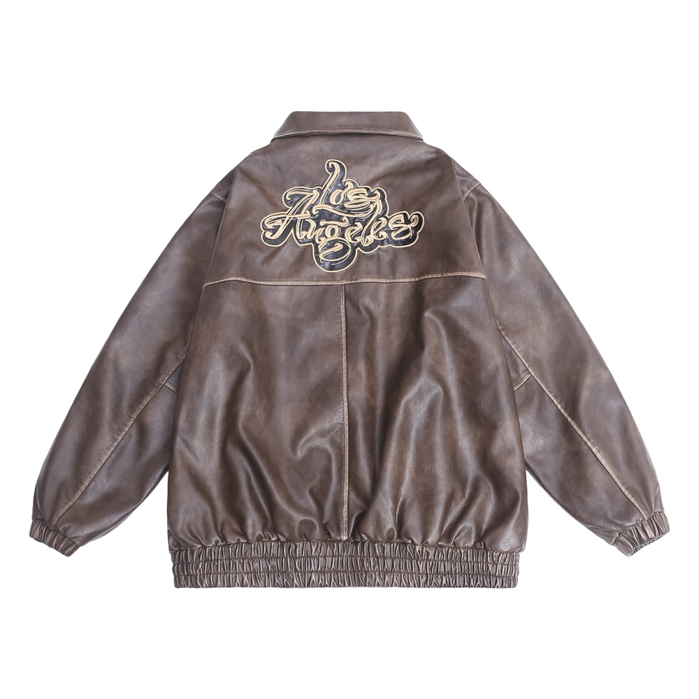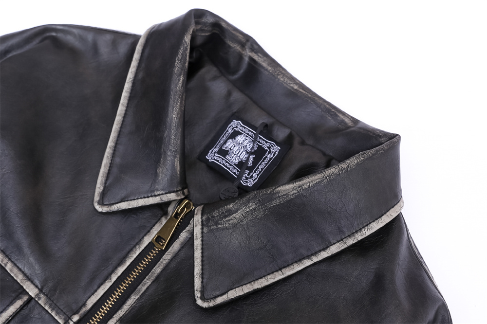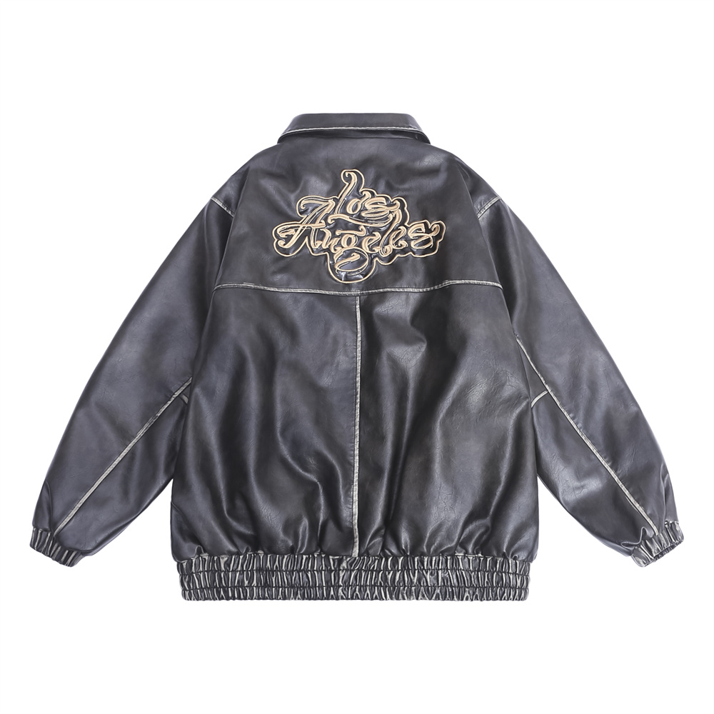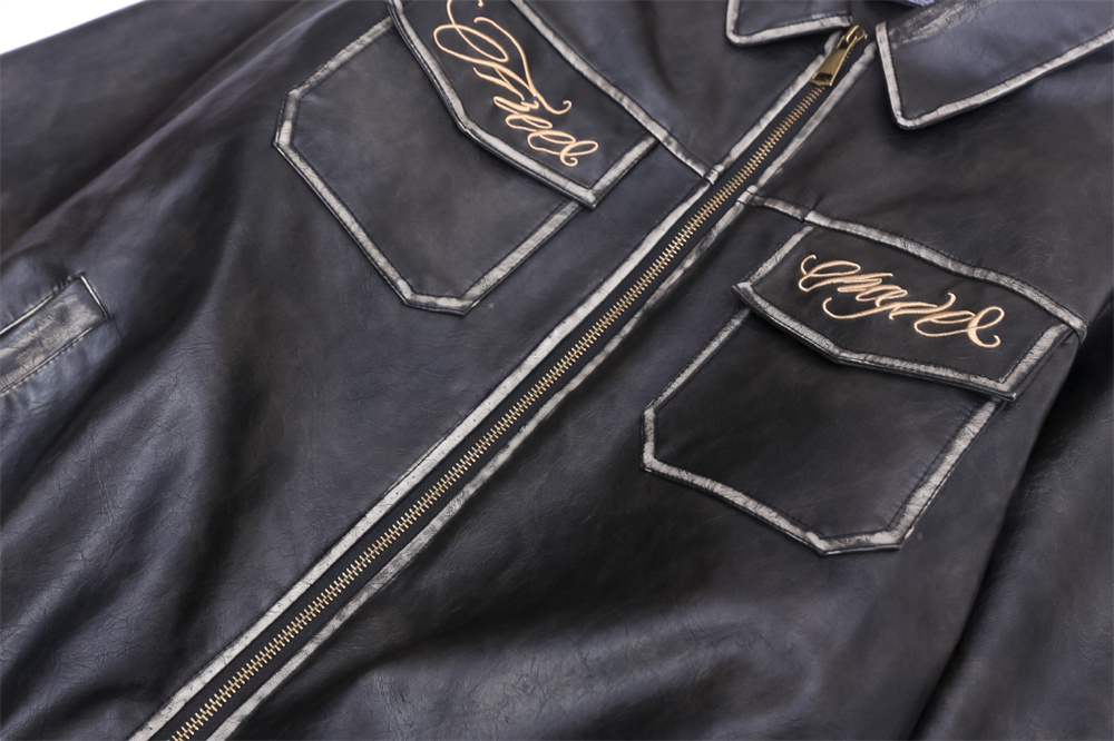 Flower Embroidery Cotton Padded Thickened Leather Coat Men