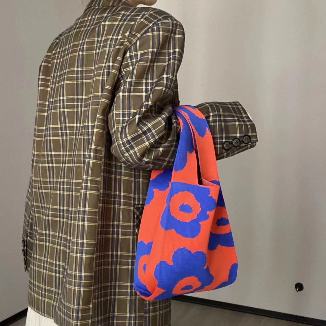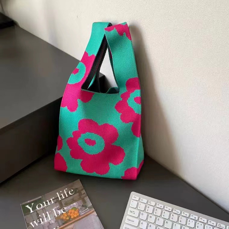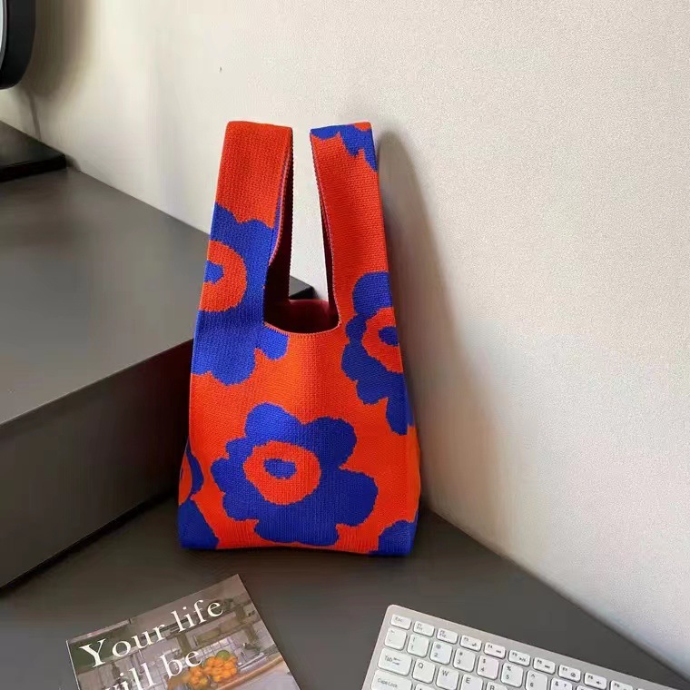 Color: sweet flowers knitted bag Sapphire orange, sweet flowers knitted bag black rice, sweet flowers rose red with flowers light green