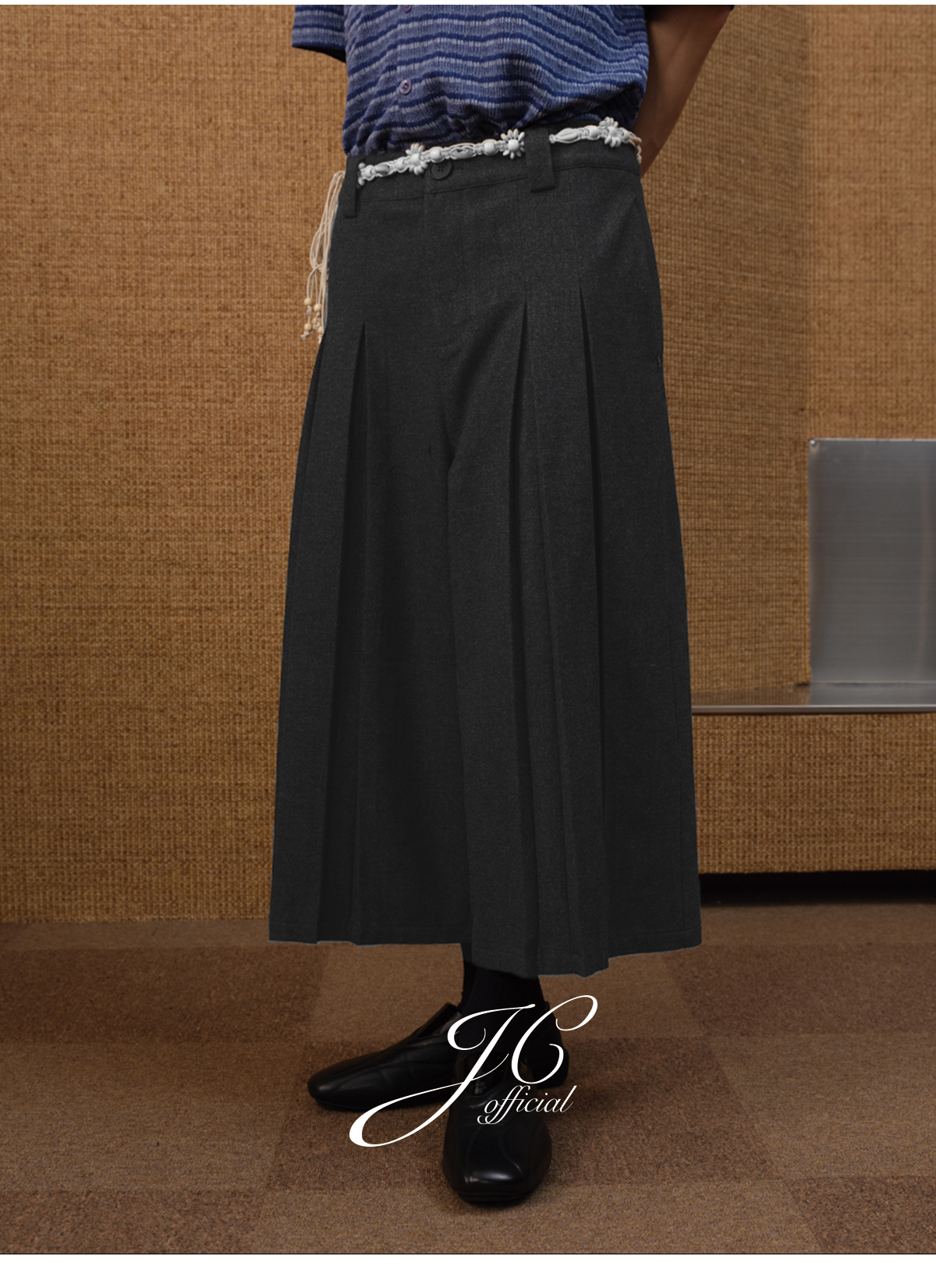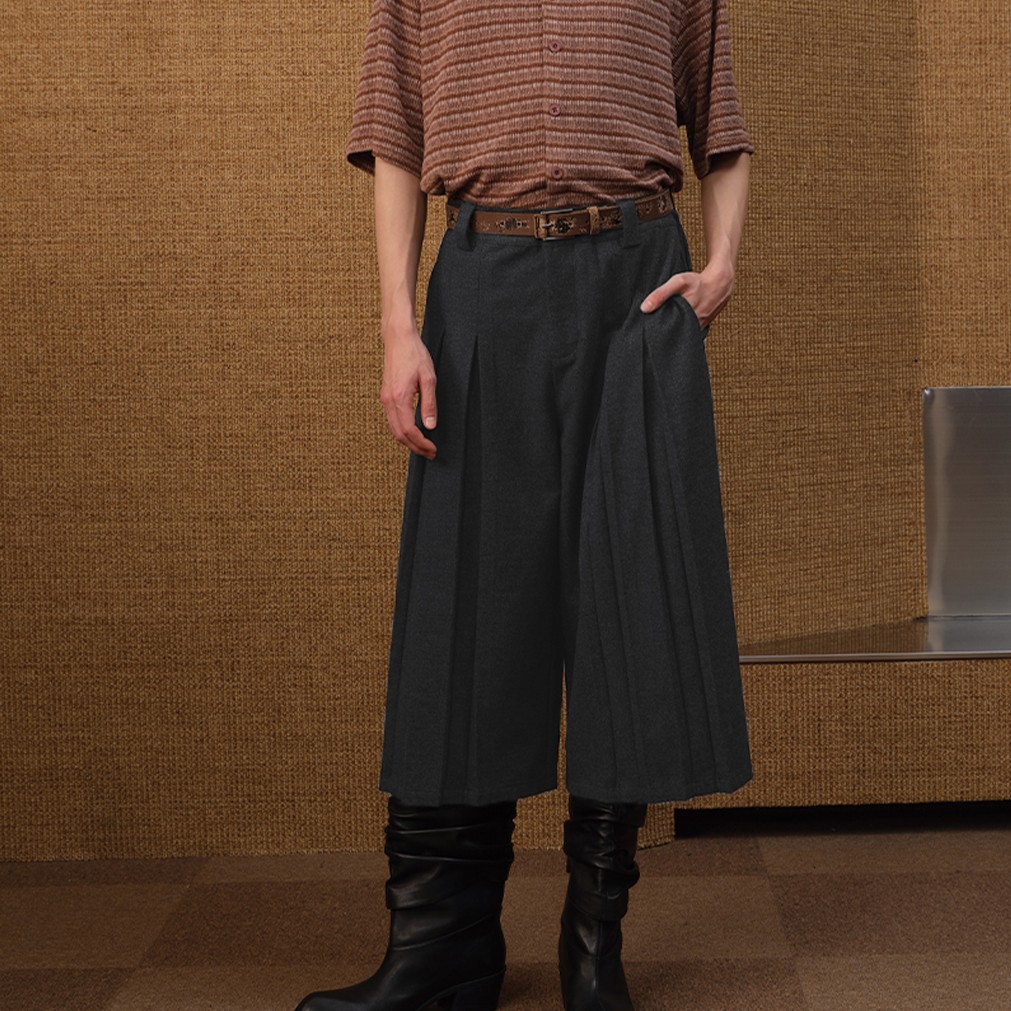 Flower Gray Cross Pleated Seven Quarter Pants