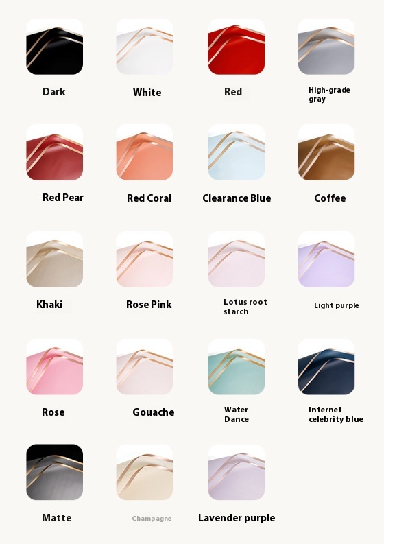 Color: dark Black, white, red pear, clear blue, rose pink, gouache, water dance, matte, high grade Gray, khaki, lotus root starch, light purple, lavender purple, red, coffee, red coral, Rose, net red and blue, champagne, silver foil, Emerald, turmeric, Emma orange, goose yellow, silver red, black-black and white nobility, white-black and white nobility