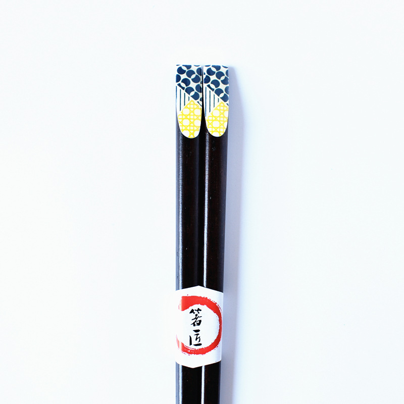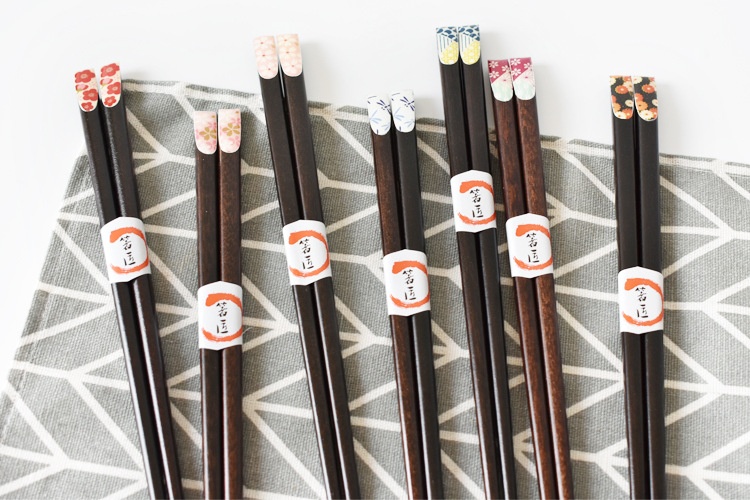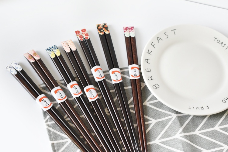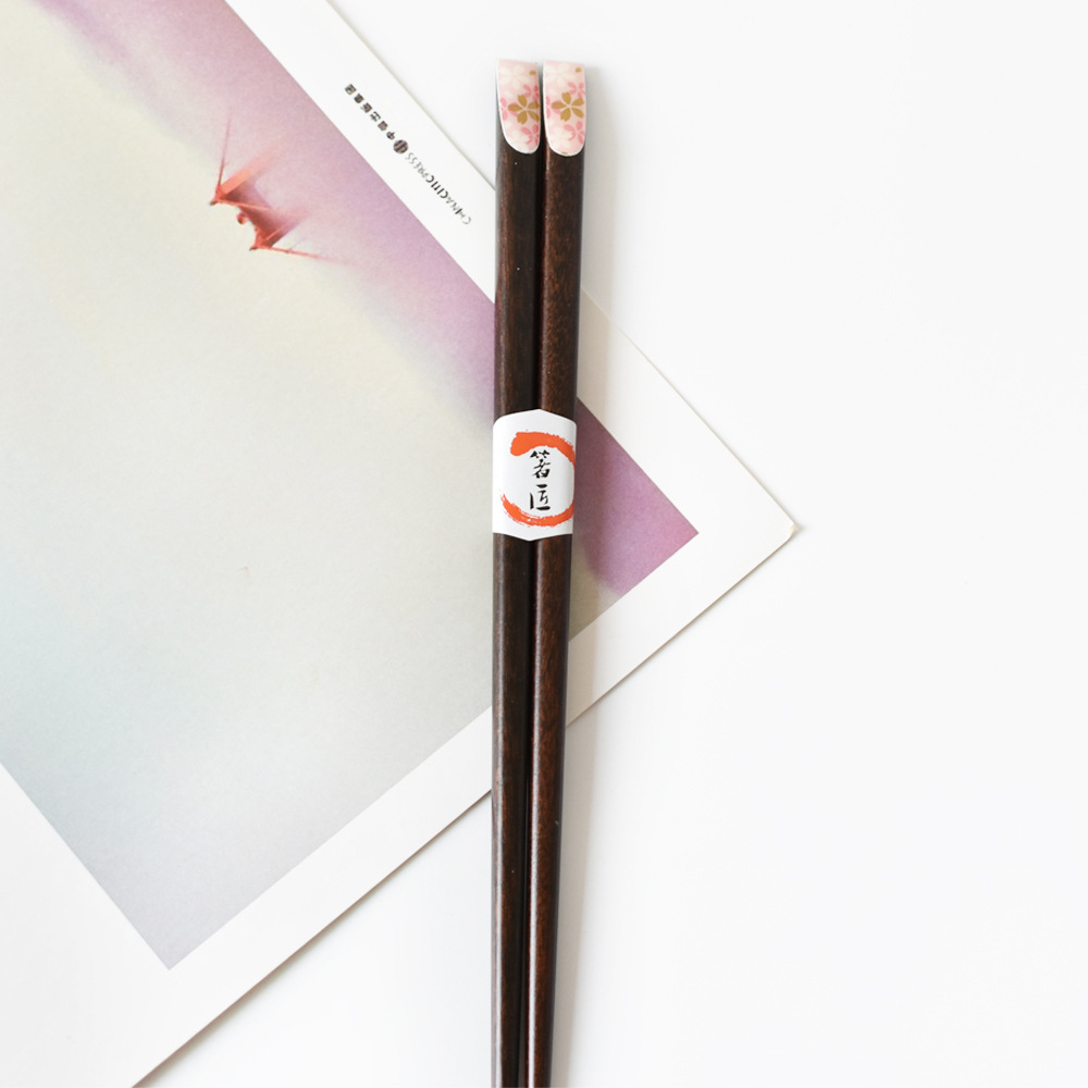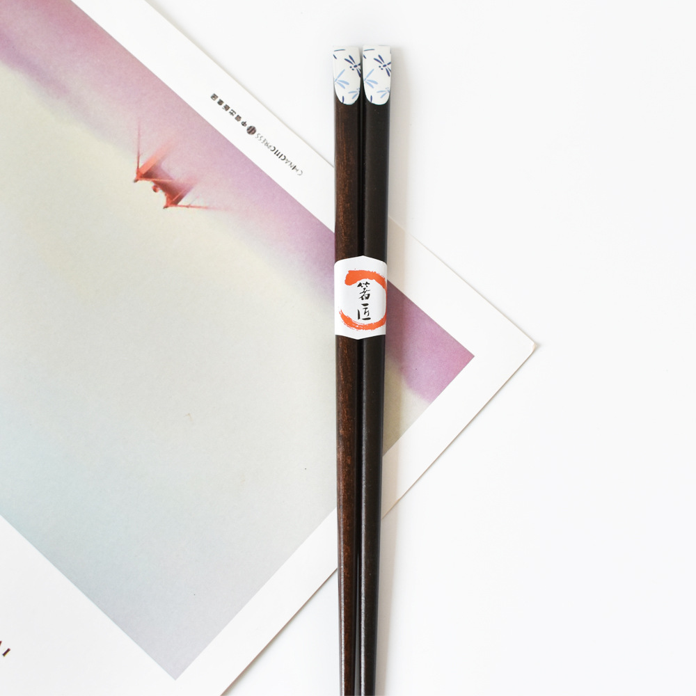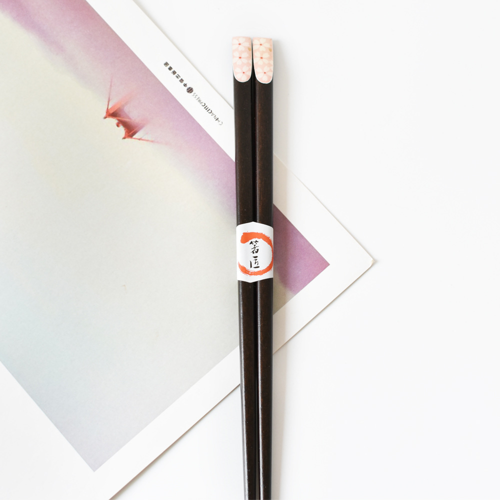 Color: red plum blossom, pink cherry blossom, yellow small flower on black background, blue dragonfly, red and green small flower, big pink cherry blossom, green and yellow dots, 5 pairs of packaging chopstick box (box)