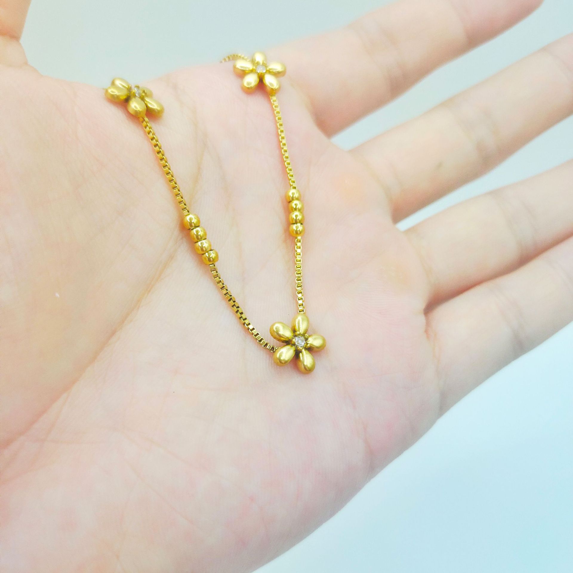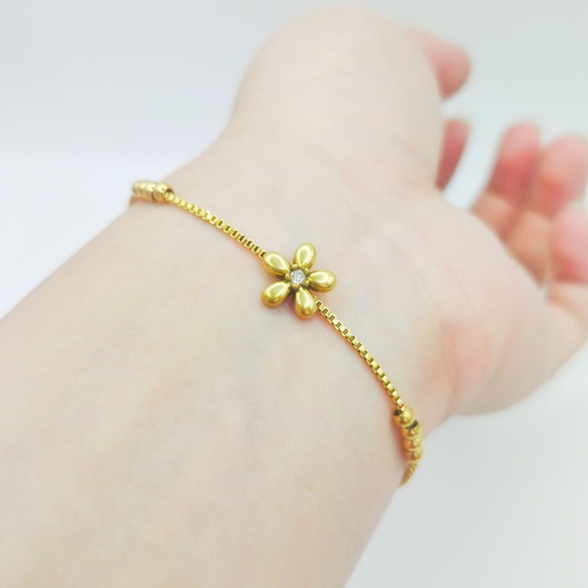 Flower-shaped Gold-plated Korean-style Fashion Pull Bracelet