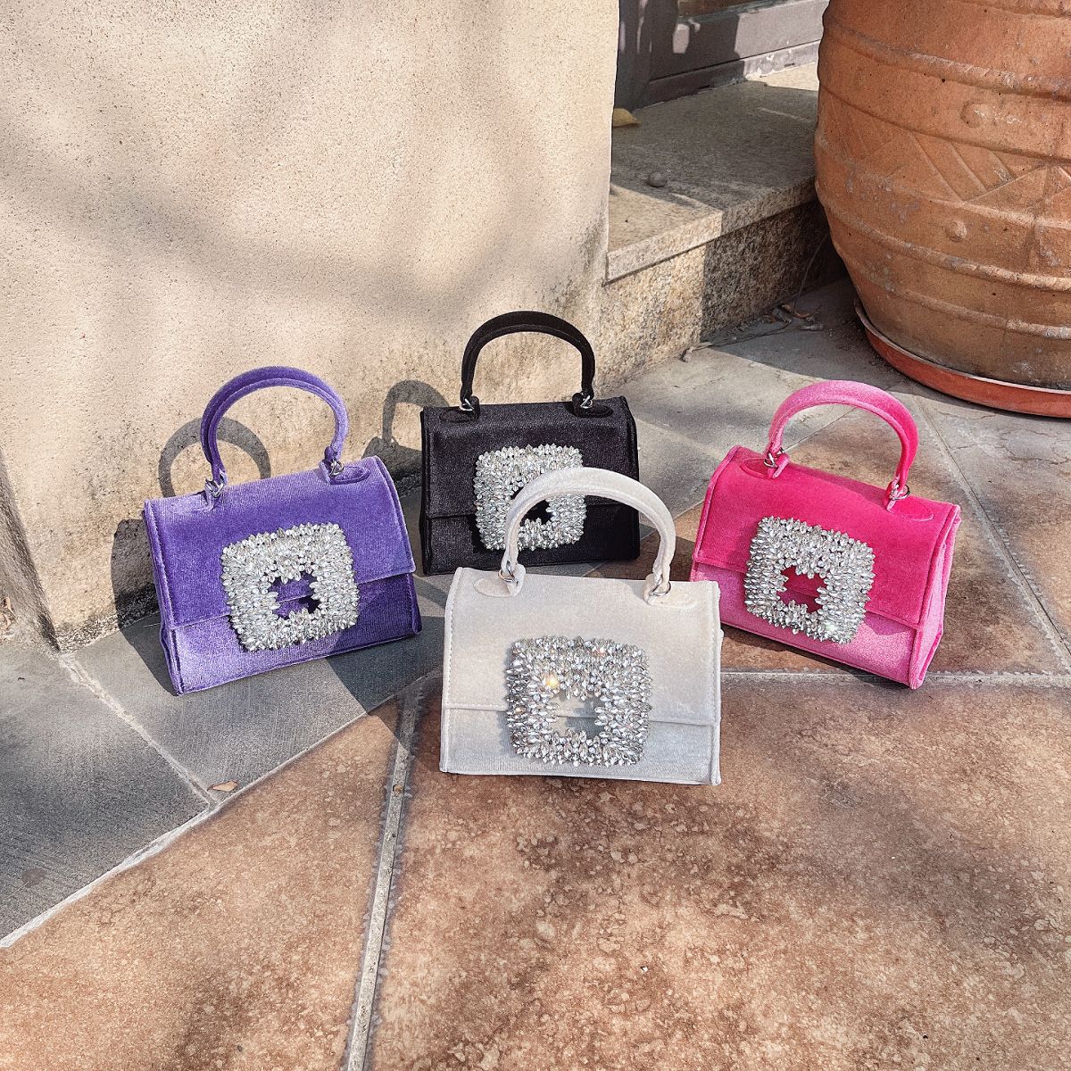 Color: black, white, rose red, purple