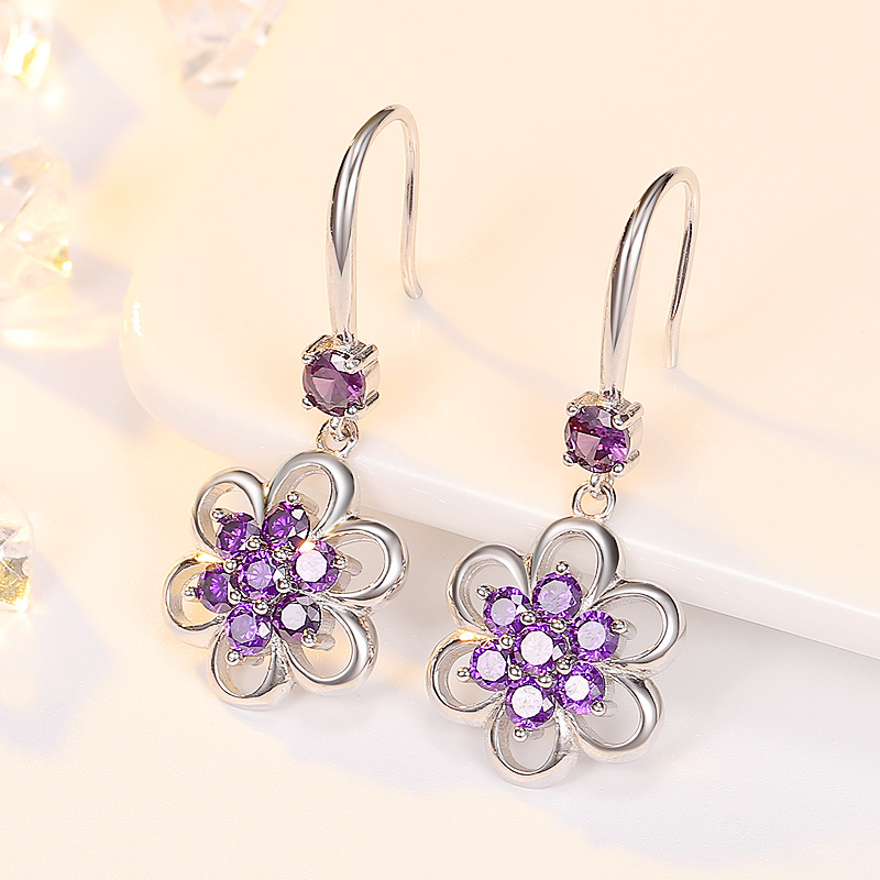 Color: ear hook white gold white stone, ear hook white gold purple stone, ear stud white gold white stone, ear stud white gold purple stone