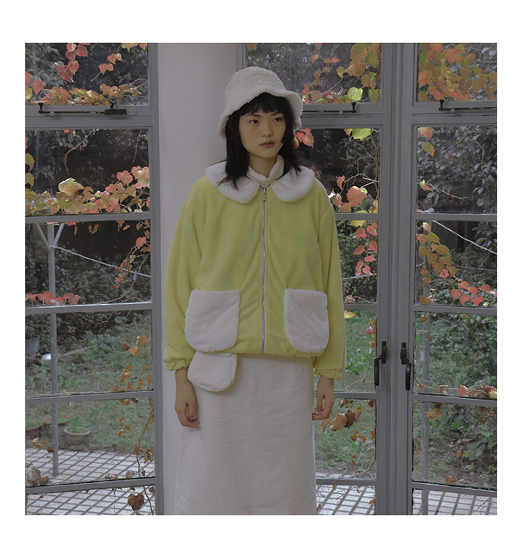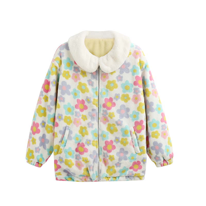 Flowers on both sides wearing a bread zipper coat