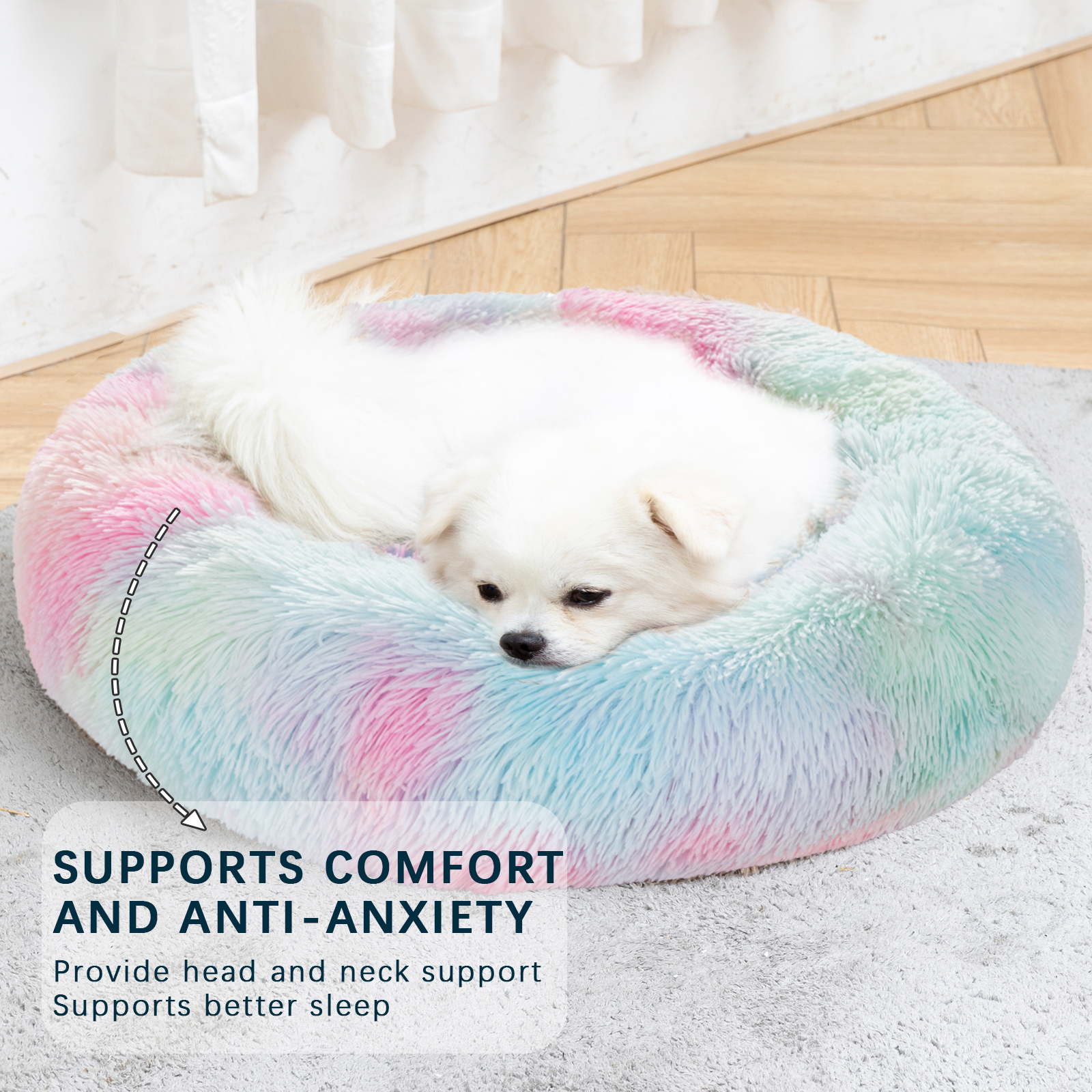 Fluffy Donut Dog Bed Xxl Warm Soft Long Plush Pet Cushion Dog House Cat Bed Washable Pet Sofa Mat Calming Samll Large Dog Beds
