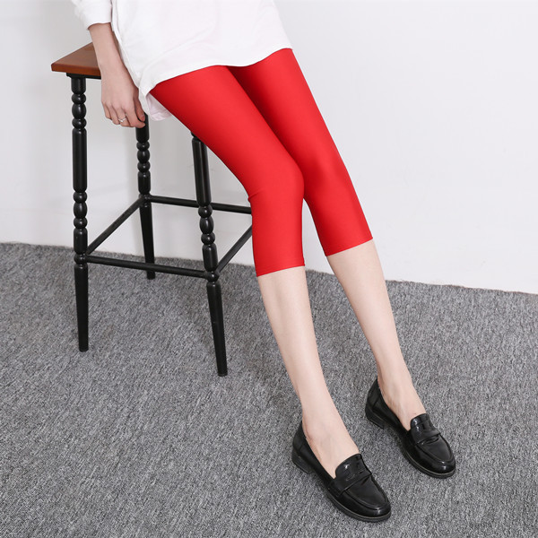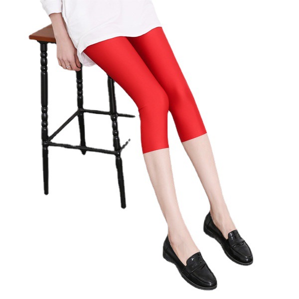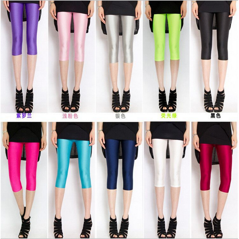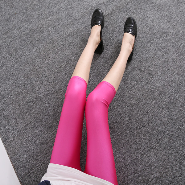 Fluorescent Seven-point Leggings Shiny Solid Color Gloss Pants