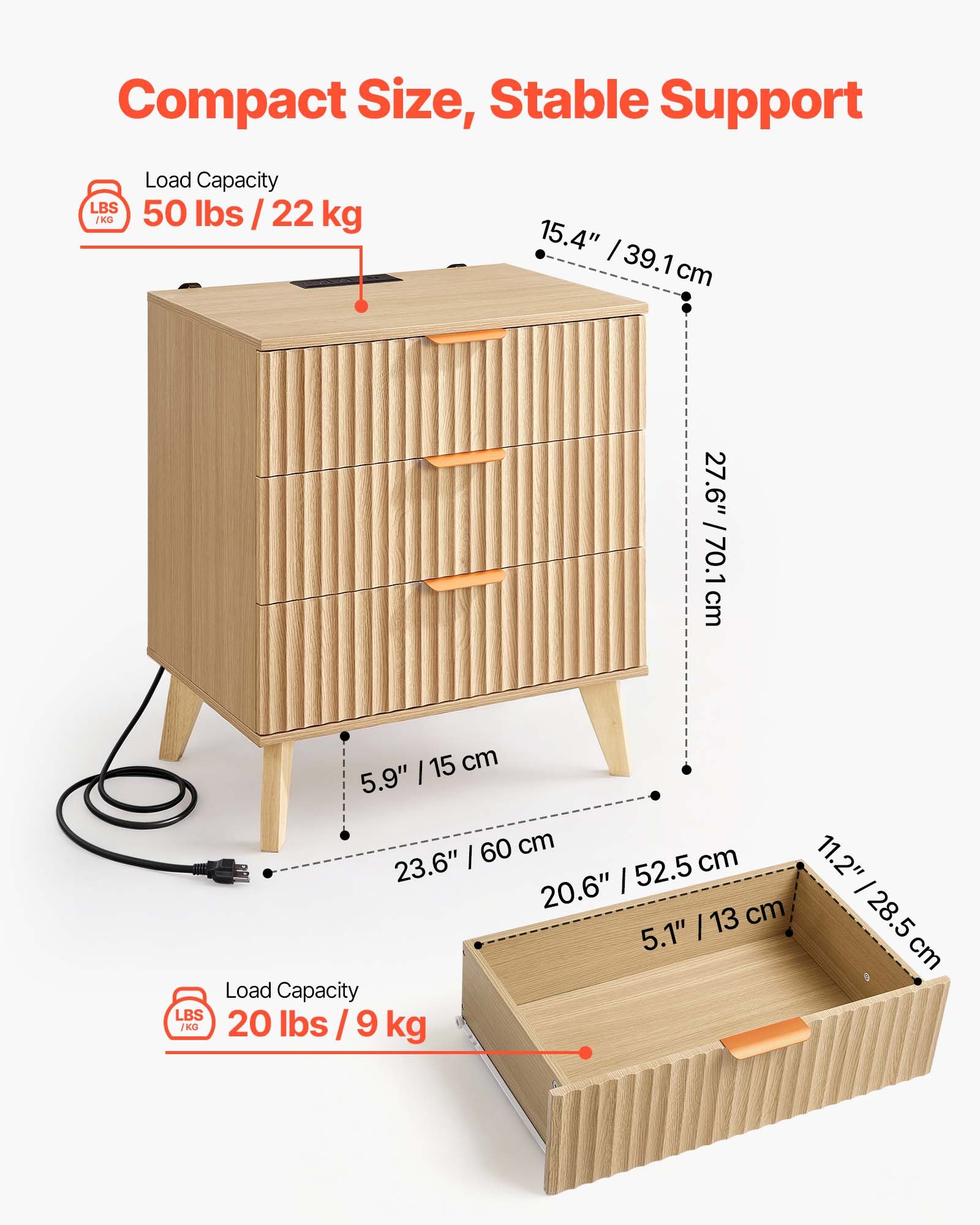 Sturdy & Durable Build: Crafted from thickened particle board, this modern night stand supports up to 50 lbs/22 kg on the tabletop and 20 lbs/9 kg per drawer. The wear-resistant surface is scratch-resistant and easy to clean, just wipe with a damp cloth
