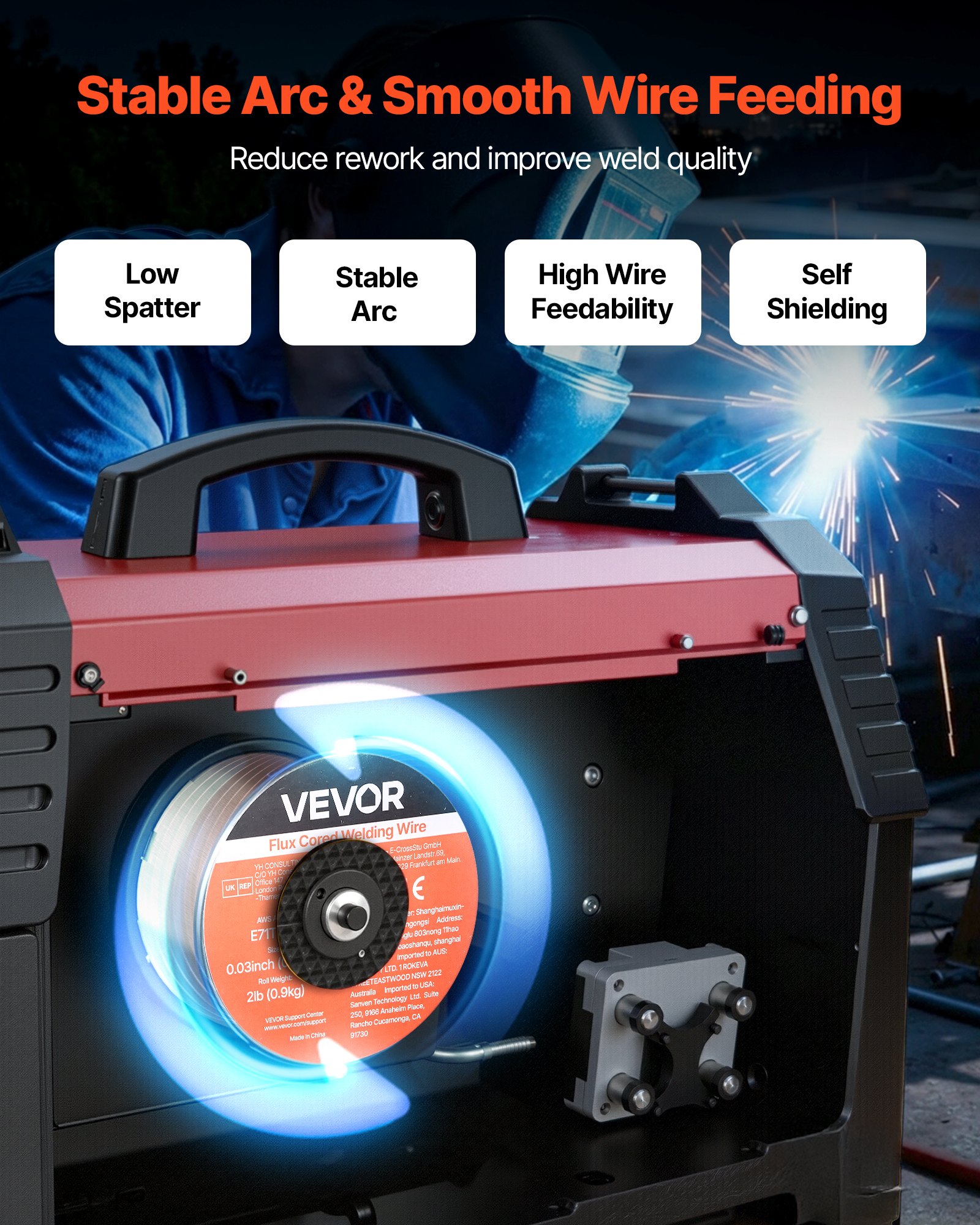 High Quality & Reliable Welds: VEVOR 0.03" 2 lbs E71T-GS flux core MIG welding wire ensures steady arc performance with low spatter for smooth, clean weld beads. Suitable for thin-gauge carbon steel and delivers consistent results across various metal fabrication tasks